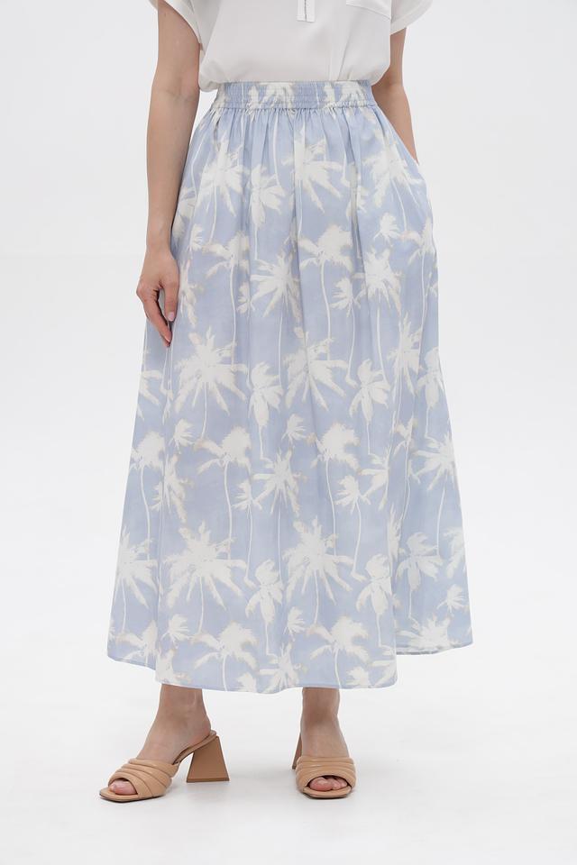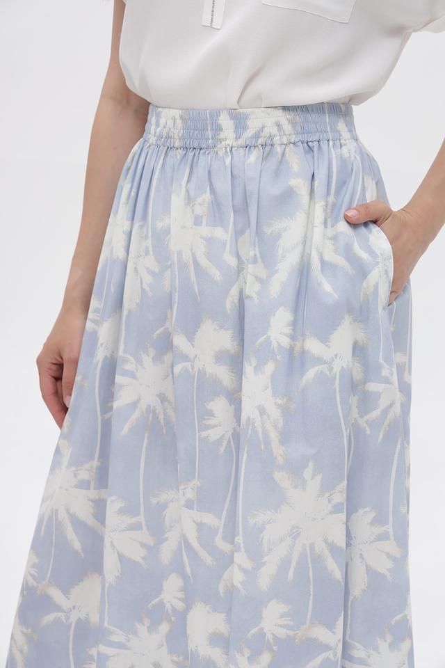 Голубая юбка Oui с ярким принтом пальм. Изготовлена из 100% хлопка, обеспечивающего комфорт и воздухопроницаемость. Отличный выбор для создания летнего и непринужденного образа. Состав: хлопок 100%
