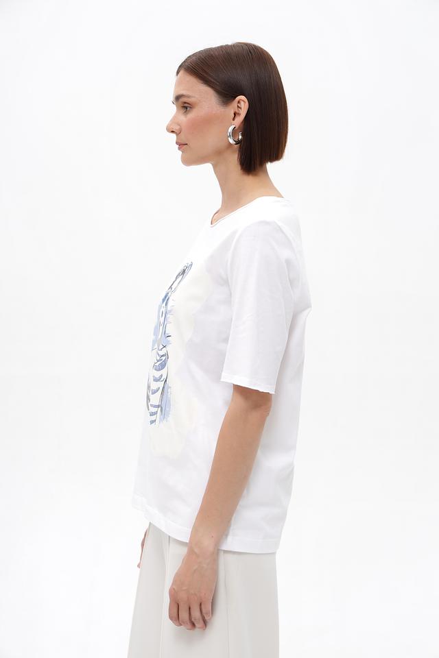 Белая футболка Oui с оригинальным принтом в стиле графики. Изготовлена из 100% хлопка, обеспечивающего комфорт и воздухопроницаемость. Идеальный выбор для создания стильного повседневного образа. Состав: хлопок 100%