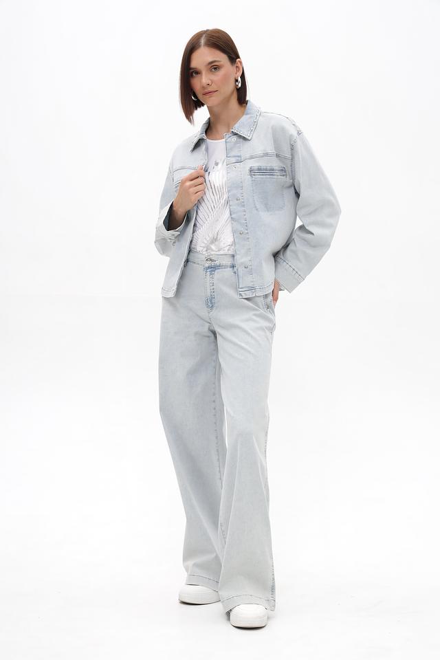Крой джинсов – широкий, обеспечивающий свободу движений и комфорт в носке. Высокая посадка подчеркивает талию и визуально удлиняет ноги. Пять карманов – два спереди и два сзади – добавляют функциональности.