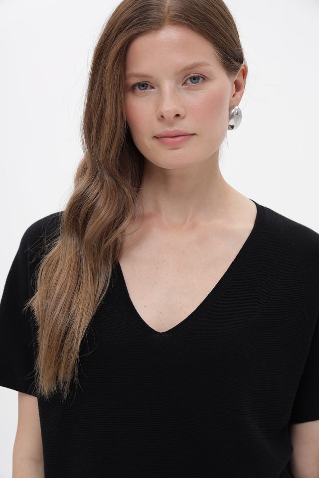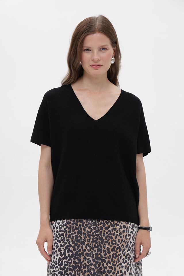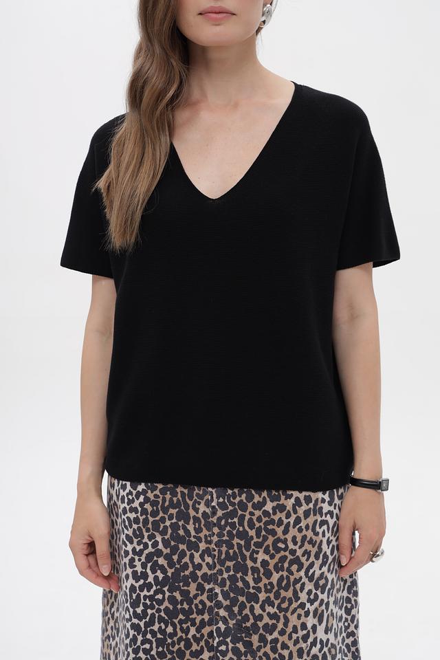 Чёрный пуловер от Oui из 100% хлопка с V-образным вырезом и короткими рукавами. Эта модель станет отличным дополнением к вашему базовому гардеробу, сочетая в себе комфорт и стиль. Состав: хлопок 100%