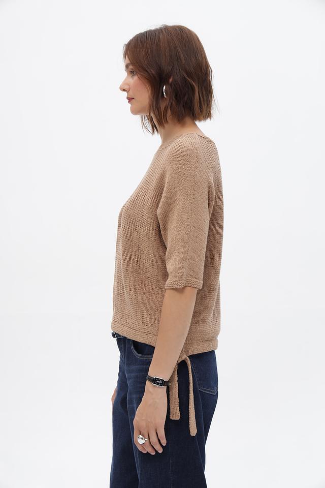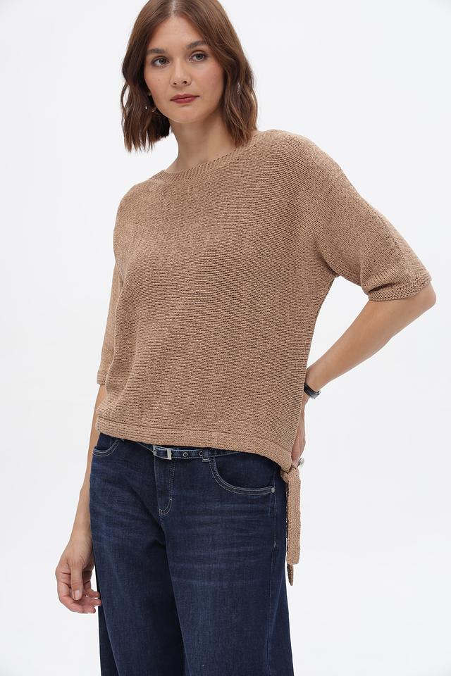 Бежевый пуловер от Oui из хлопка с полиамидом. Модель с короткими рукавами и завязками по бокам. Идеально дополнит повседневный образ. Состав: хлопок 75%, полиамид 25%