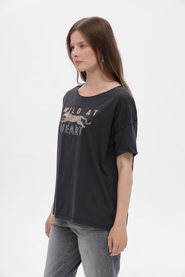 Женская футболка Oui графитового цвета с оригинальным принтом “Wild at Heart”. Модель выполнена из 100% хлопка, обеспечивающего комфорт в носке. Свободный крой и округлый вырез. Состав: хлопок 100%