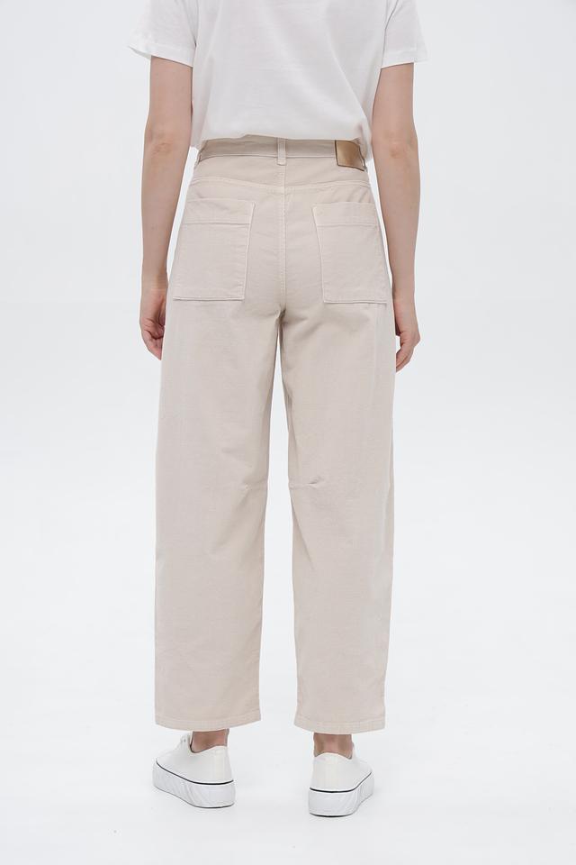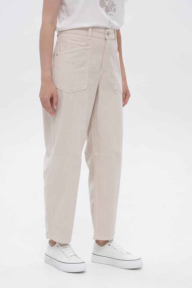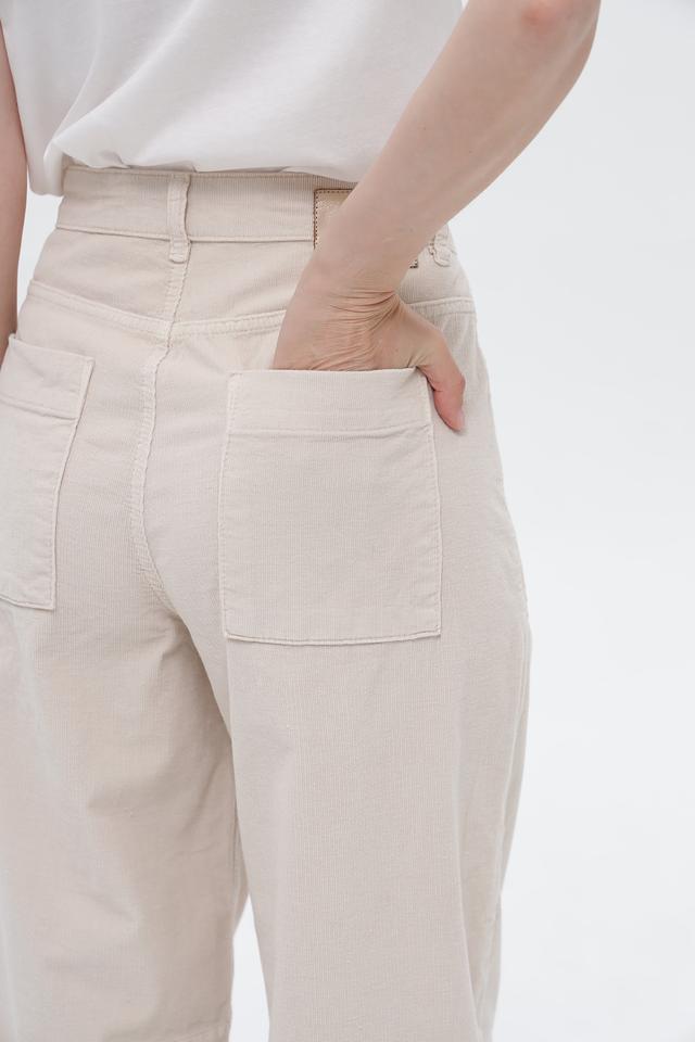 Брюки оснащены функциональными карманами, включая накладные карманы на бедрах, что придает им практичный и стильный вид. Застежка на пуговицу подчеркивает классический дизайн.