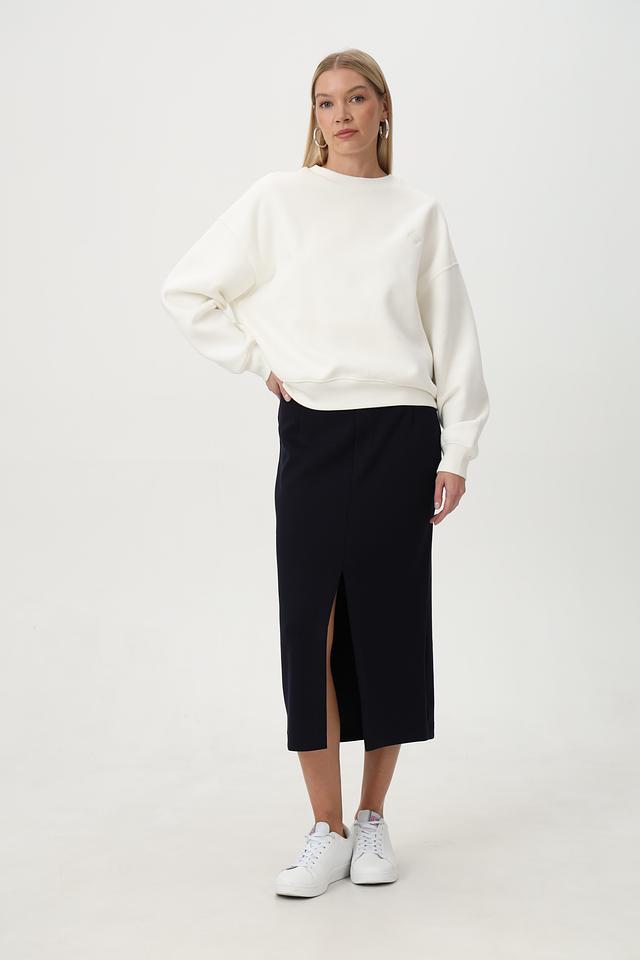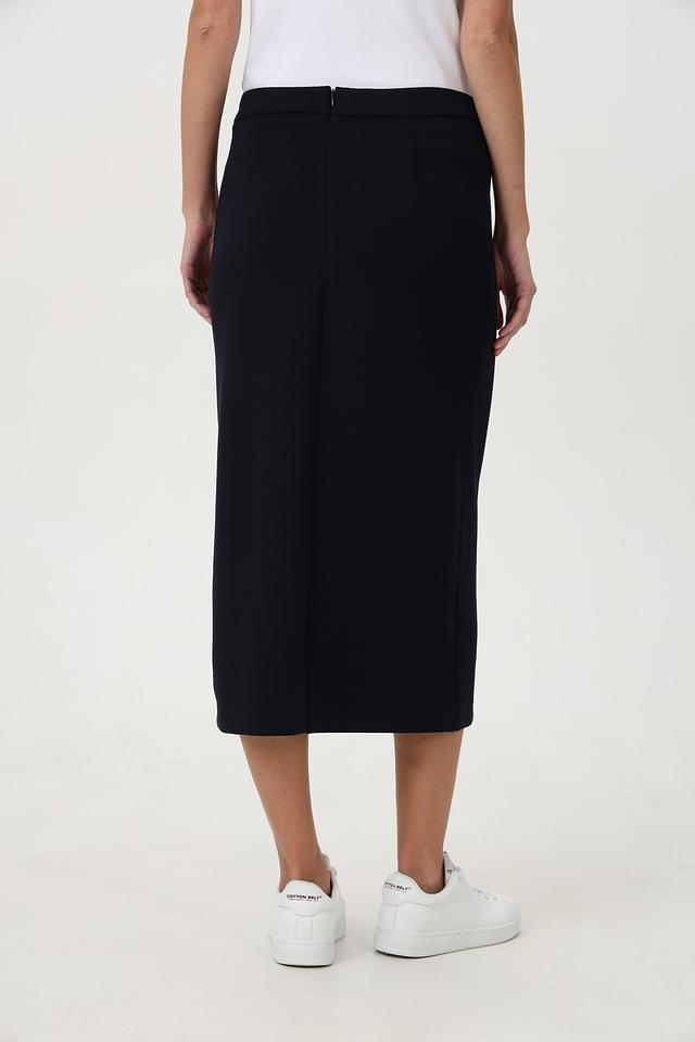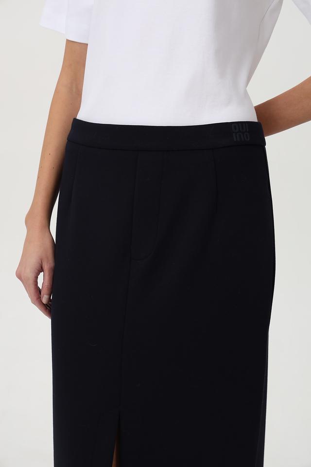 Классическая юбка миди от бренда Oui станет отличным дополнением к вашему гардеробу. Модель выполнена в тёмно-синем цвете и имеет элегантный крой с разрезом спереди.