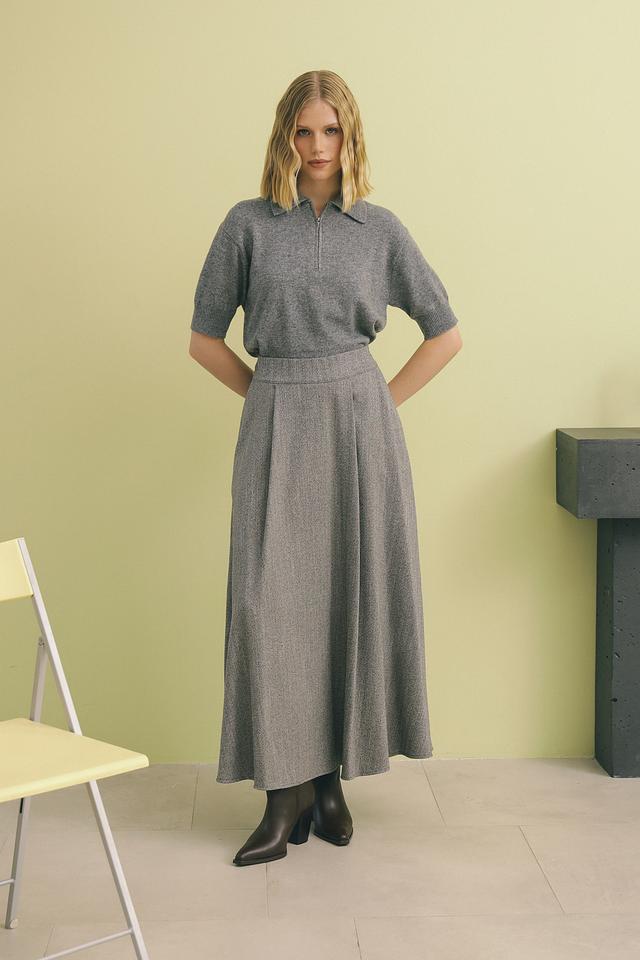 Серый пуловер от Oui с коротким рукавом и застежкой-молнией на горловине. Изделие выполнено из полиамидного трикотажа, обеспечивающего комфорт и удобство в носке. Состав: шерсть 50%, полиамид 30%, модал 20%
