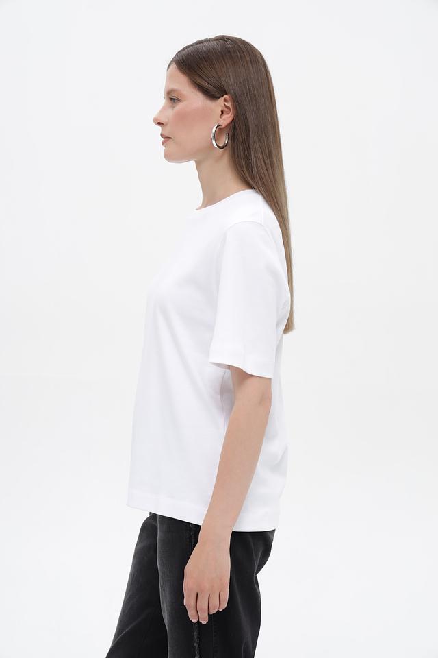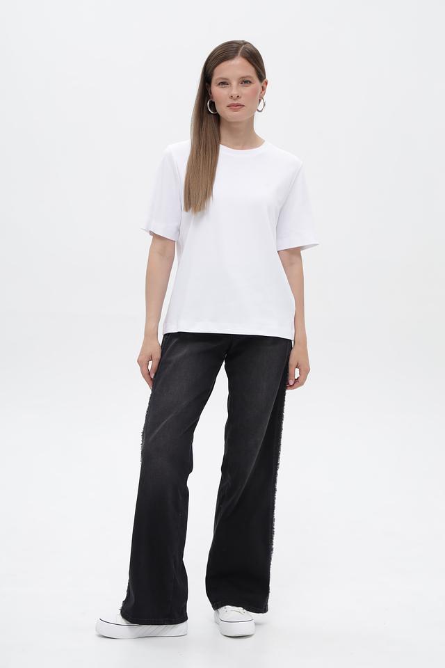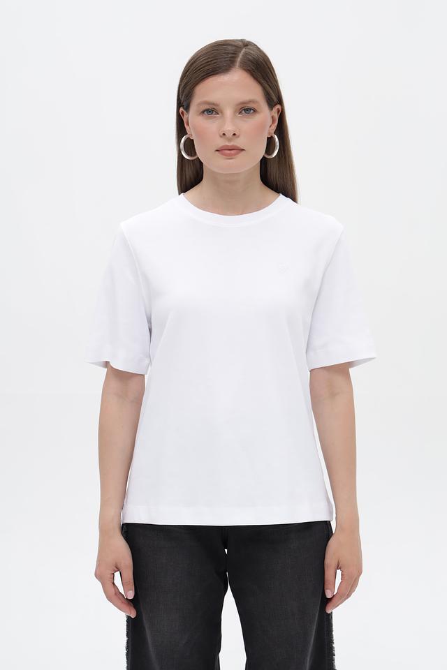 Футболка имеет прямой крой, который подходит для любой фигуры. Короткие рукава делают ее идеальным выбором для теплой погоды. Минималистичный дизайн позволяет сочетать эту футболку с различными элементами одежды, создавая разнообразные образы.