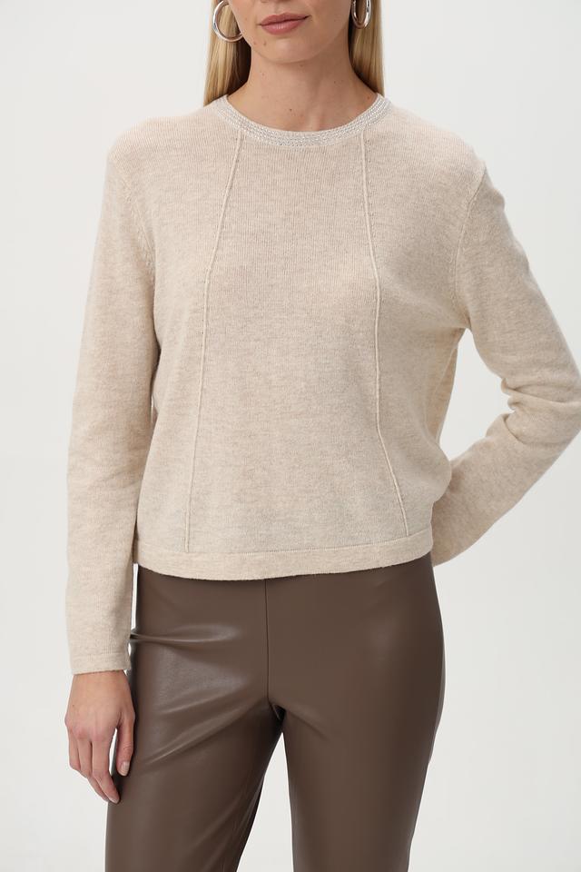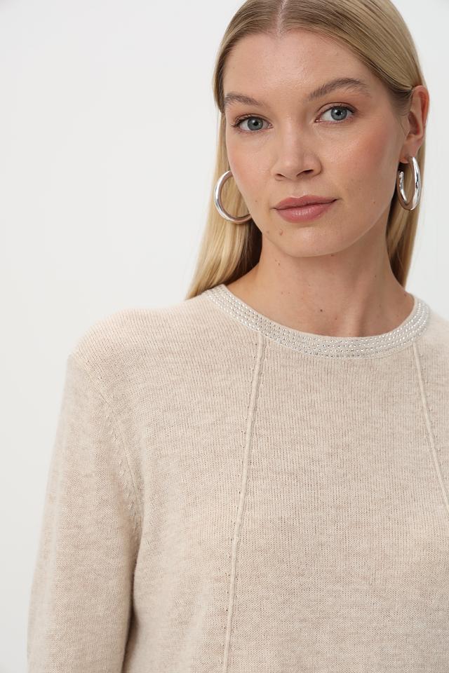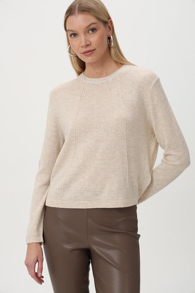 Бежевый пуловер от Oui с декоративной отделкой горловины. Удобный крой и приятная фактура изделия подчеркнут ваш стиль. Подходит для создания повседневных образов. Состав: шерсть 50%, полиамид 30%, полиакрил 20%