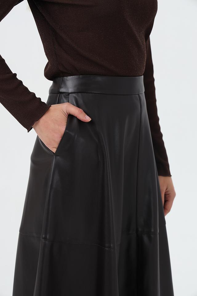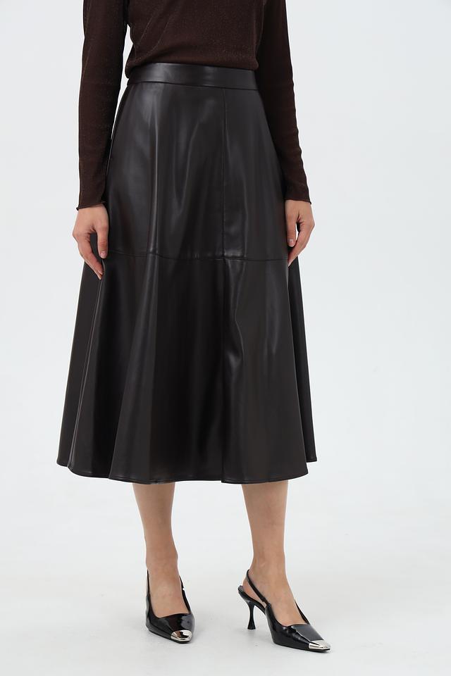 Классическая юбка-солнце миди от бренда Oui, выполненная из гладкой экокожи. Данная модель станет универсальным дополнением к вашему гардеробу, легко сочетаясь как с повседневной одеждой, так и с более элегантными образами.