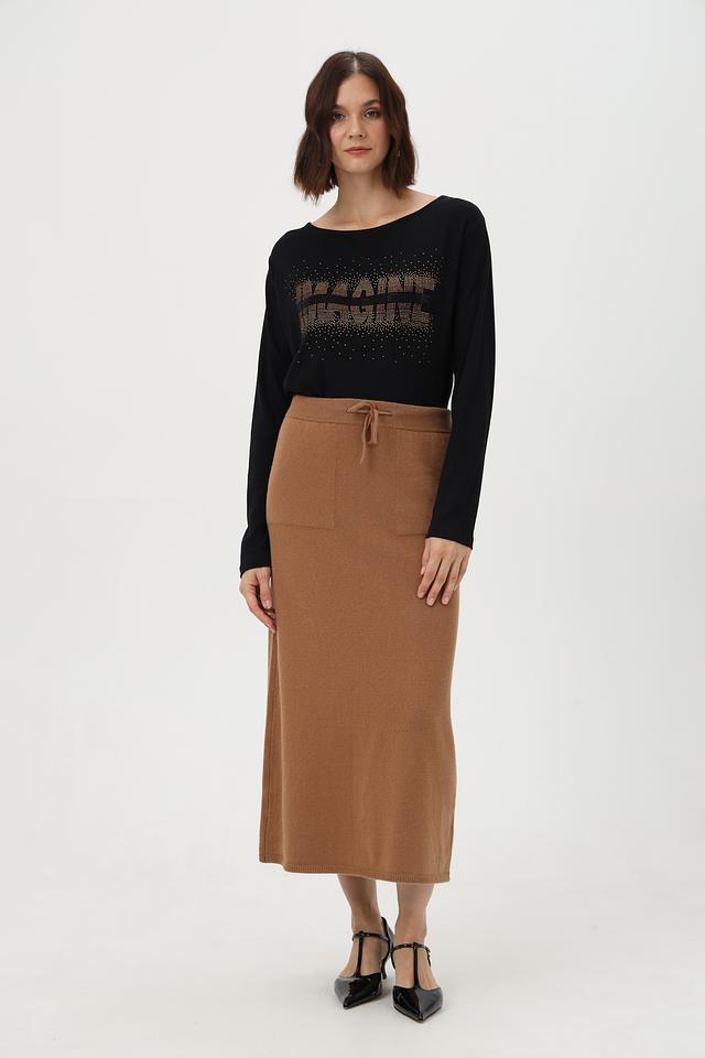 Представляем вязаную юбку от бренда Oui. Это стильная модель длиной миди, выполненная в спокойном коричневом цвете.