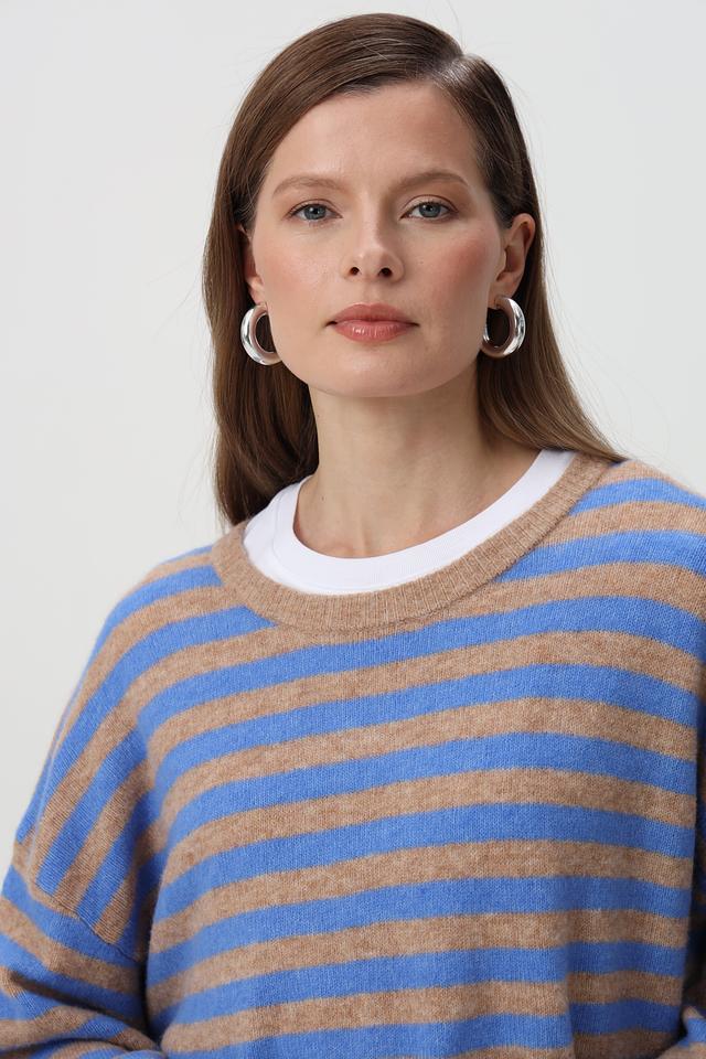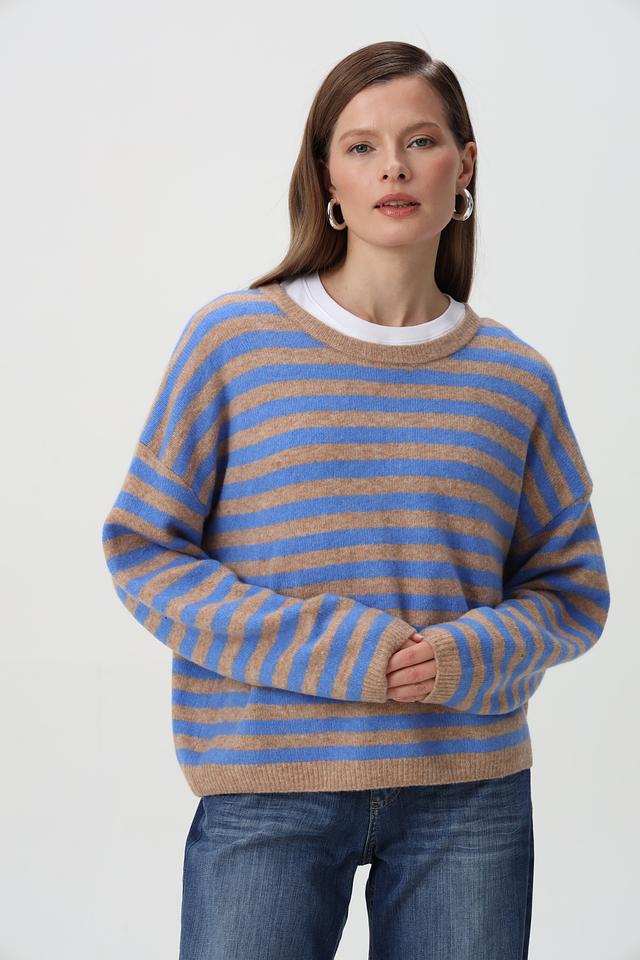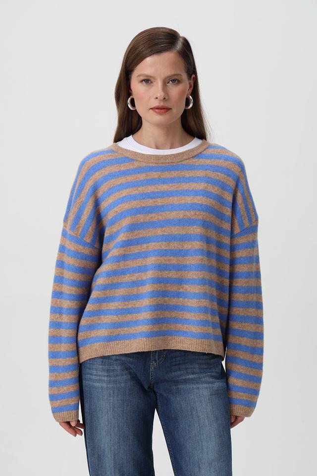 Голубой пуловер Oui с горизонтальными полосами станет отличным дополнением к вашему гардеробу. Изготовлен из мягкой смеси шерсти и полиамида, обеспечивающей комфорт и тепло. Свободный крой. Состав: полиамид 44%, шерсть 32%, полиэстер 21%, эластан 3%