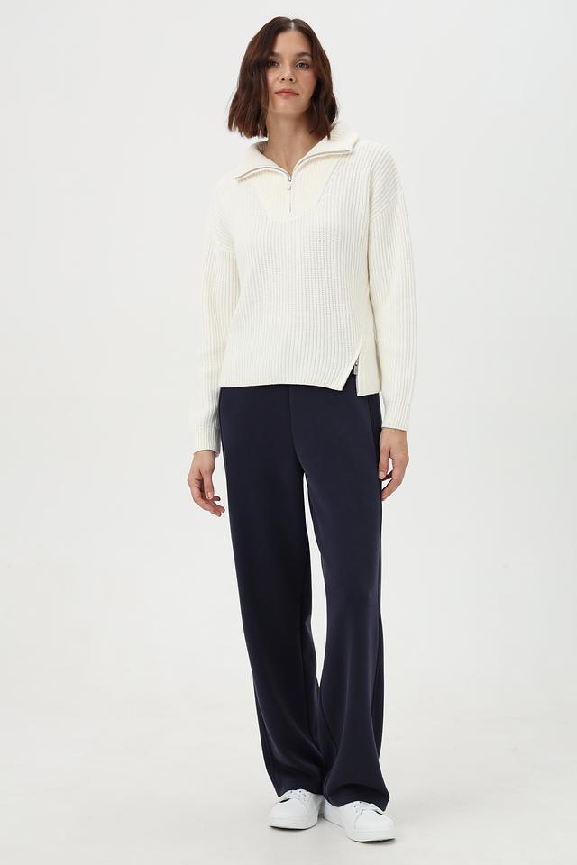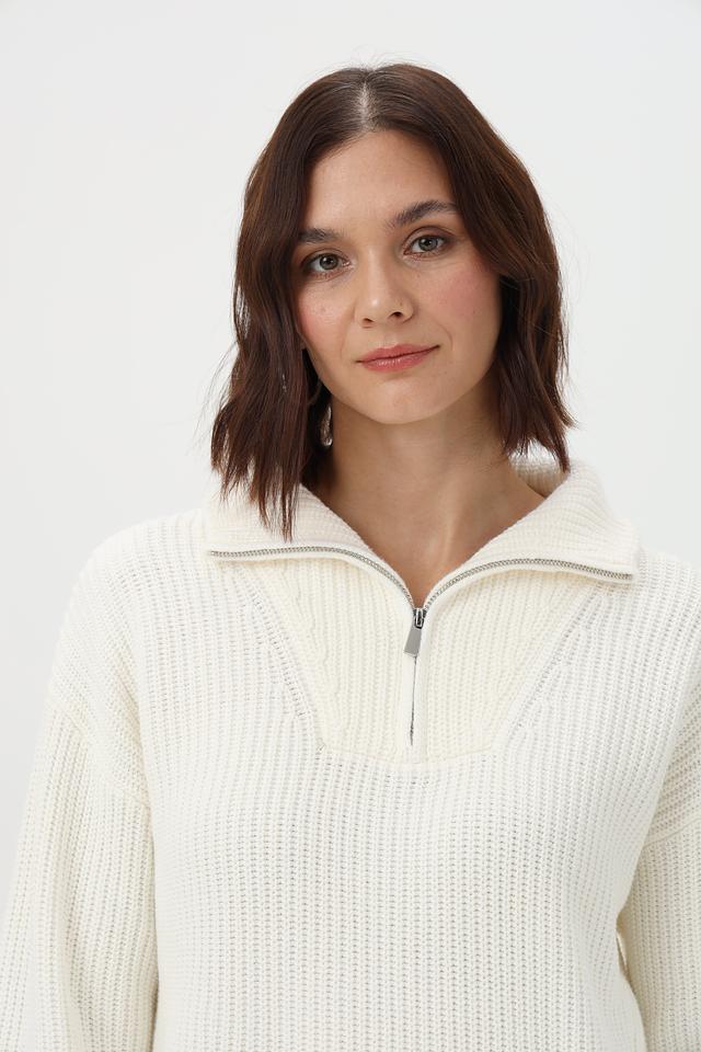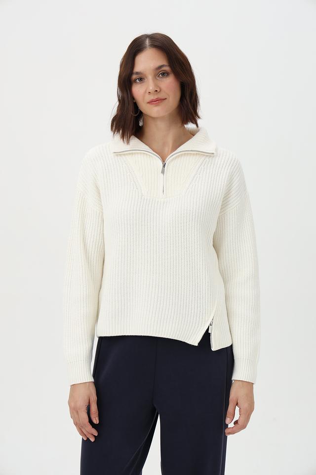 Пуловер Oui с молнией молочный