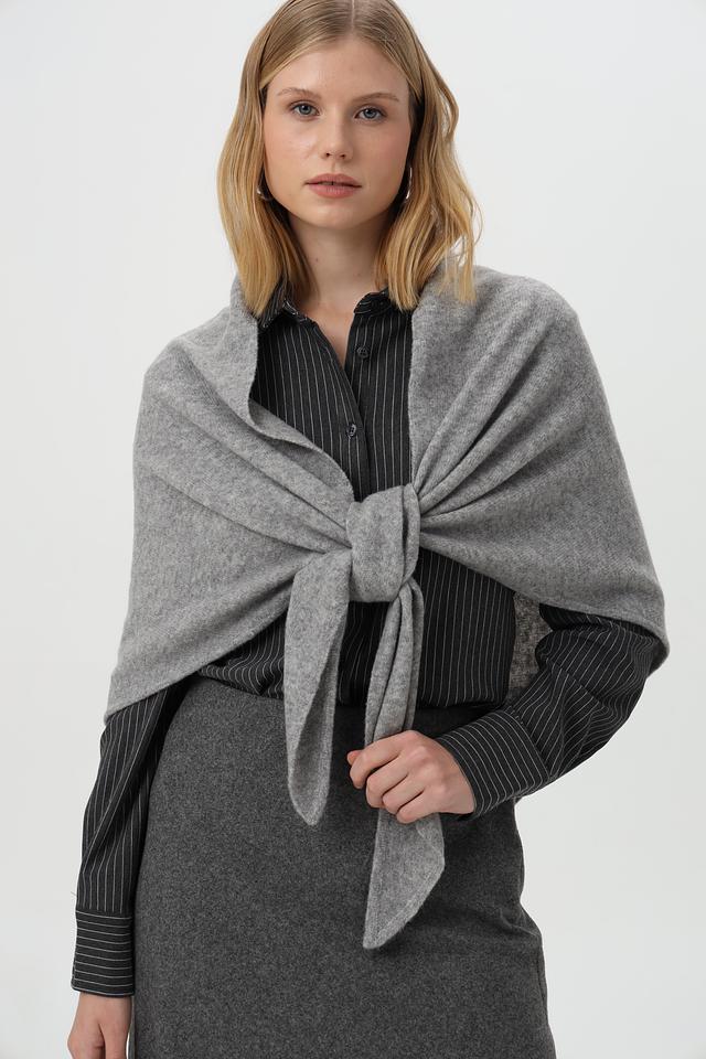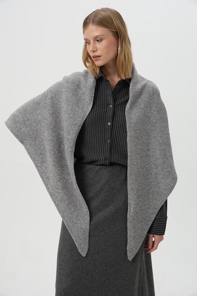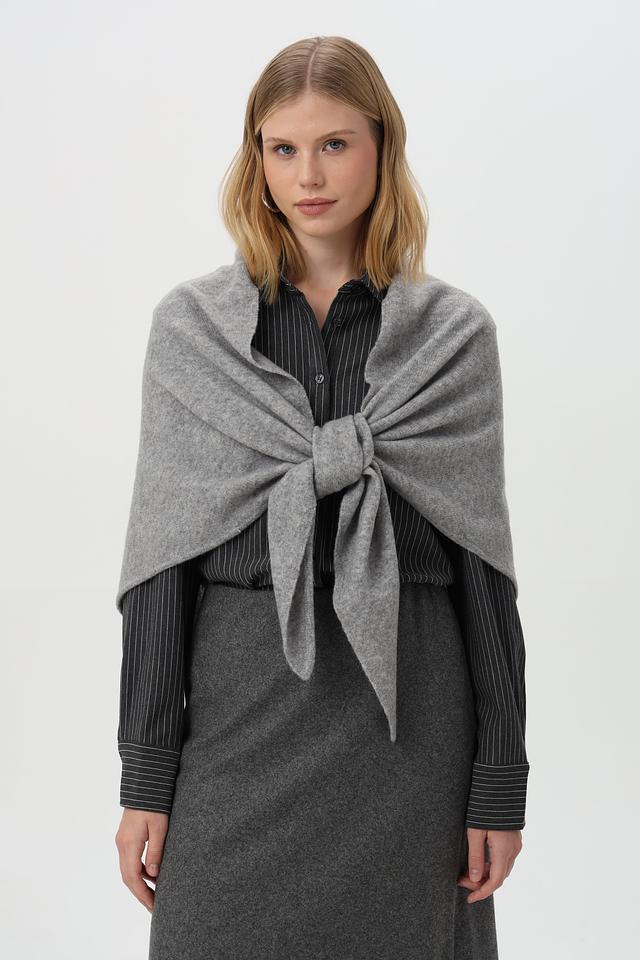 Серый шарф Oui из мягкой шерсти — стильный и уютный аксессуар. Шарф имеет форму треугольника и завязывается узлом, что придает образу оригинальность. Состав: шерсть, полиамид, полиэстер и эластан. Состав: полиамид 44%, шерсть 32%, полиэстер 21%, эластан 3%