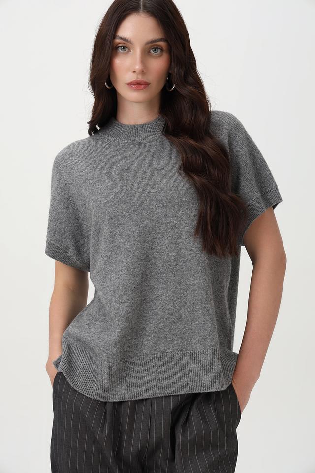 Пуловер Oui серый с коротким рукавом