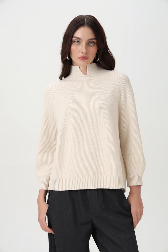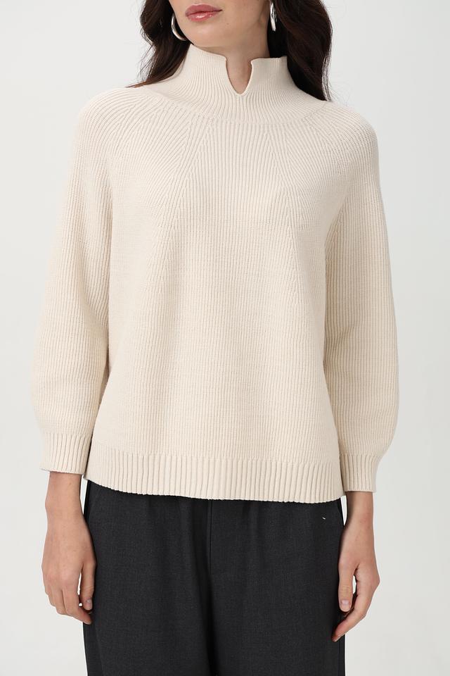Пуловер Oui бежевый с вырезом