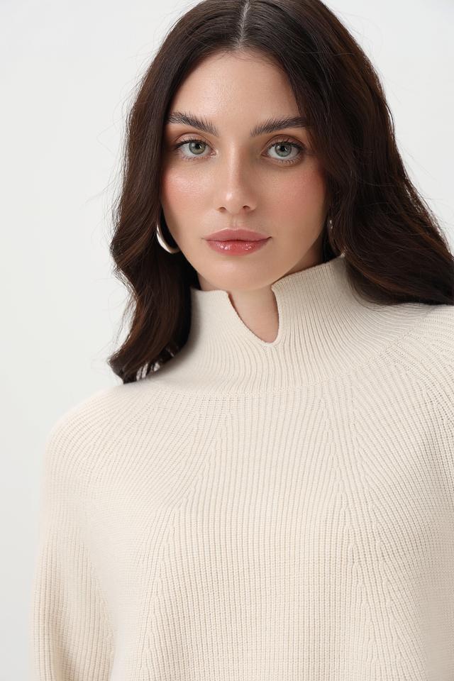 Бежевый пуловер от Oui с оригинальным вырезом на горловине. Изготовлен из мягкого трикотажа с добавлением вискозы. Идеально сочетается с брюками и юбками. Состав: вискоза 50%, полиэстер 28%, полиамид 22%
