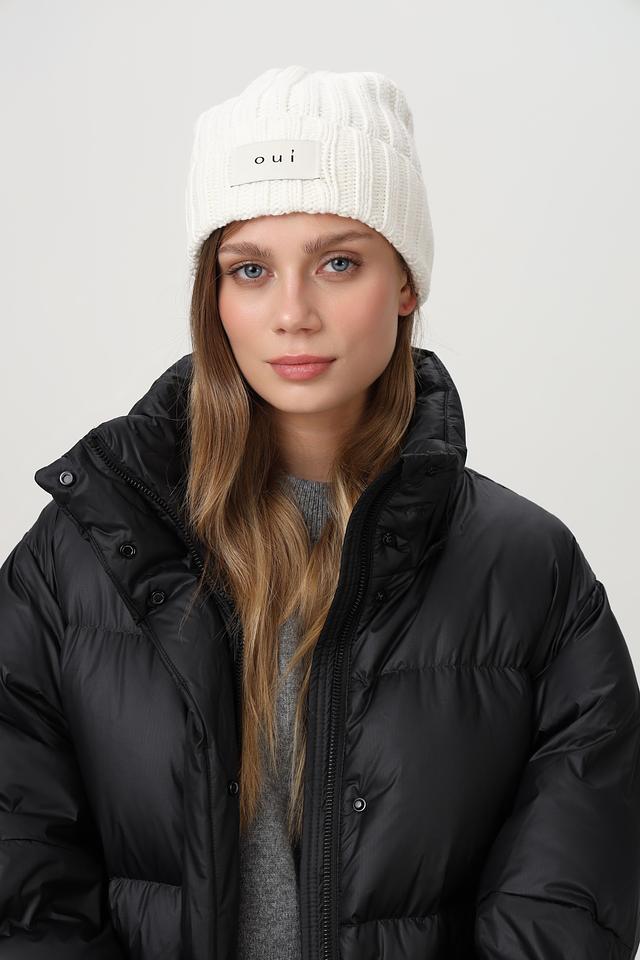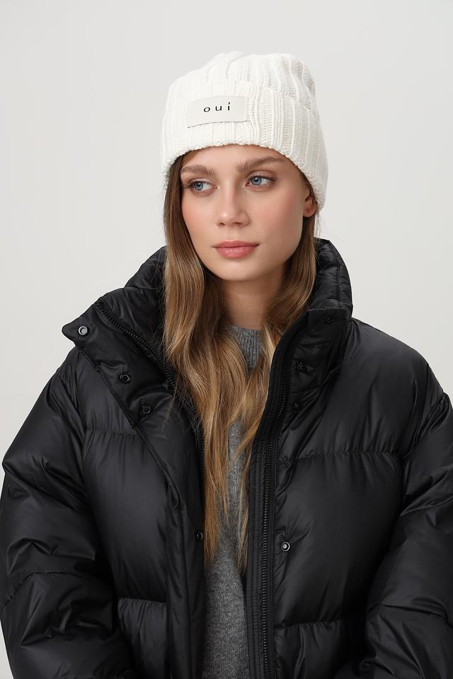 Классический дизайн шапки дополнен небольшим логотипом Oui на лицевой стороне, что придает ей узнаваемый и лаконичный вид. Вязаная текстура придает шапке объем и фактурность. Шапка идеально сочетается с верхней одеждой различных стилей – от спортивного до классического.