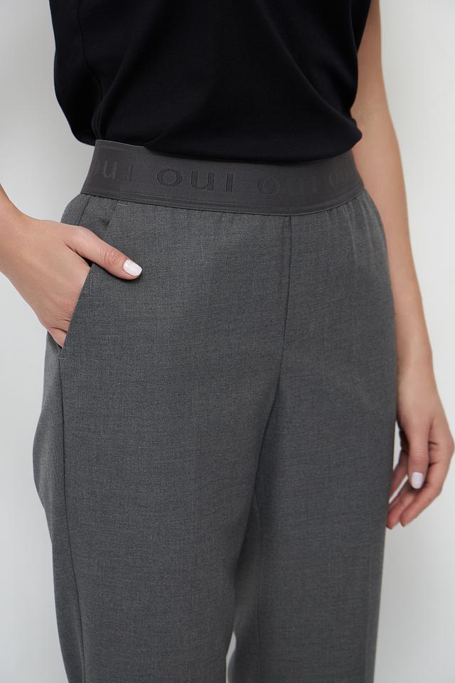 Серые брюки от Oui — это стильное и комфортное решение для повседневного гардероба. Модель выполнена из мягкой ткани с добавлением вискозы и эластана, что обеспечивает удобную посадку и свободу движений. Эластичный пояс и манжеты добавляют практичности. Состав: полиэстер 63%, вискоза 33%, эластан 4%