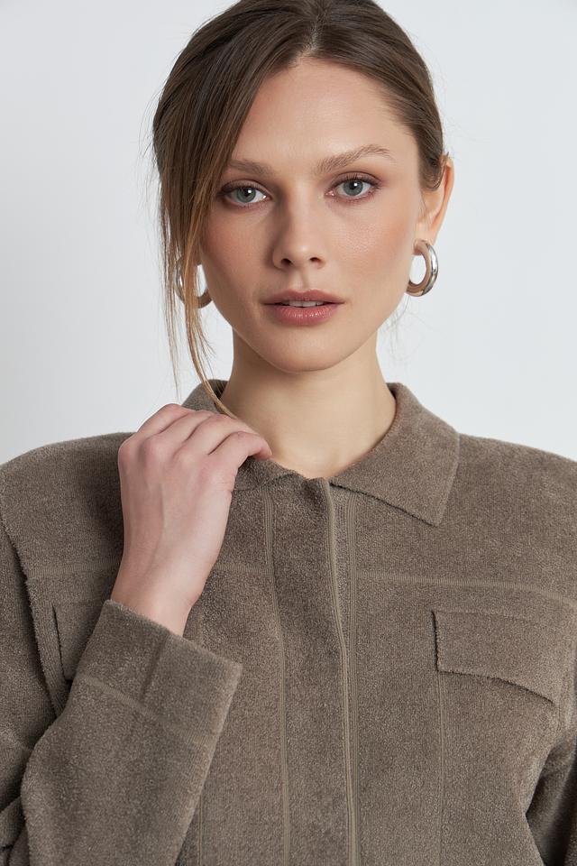 Этот жакет от бренда Oui станет прекрасным дополнением к вашему гардеробу. Он выполнен в спокойном коричневом цвете, который легко сочетается с различными элементами одежды.