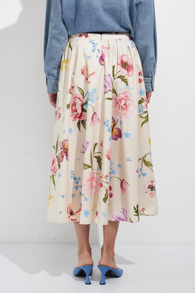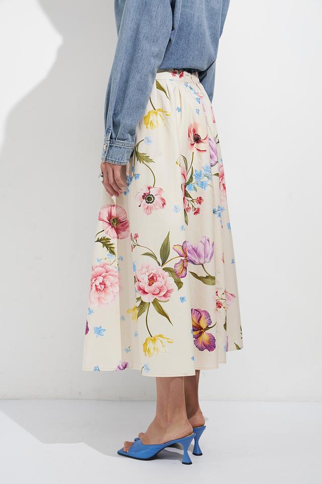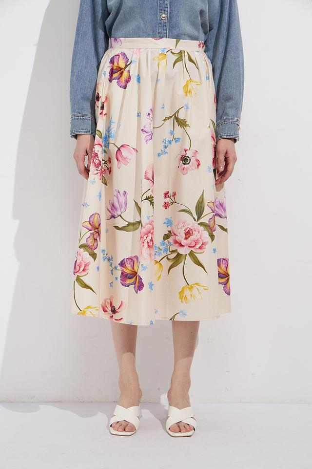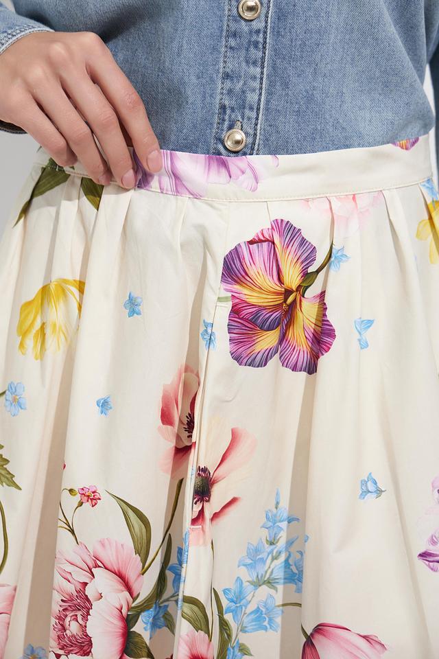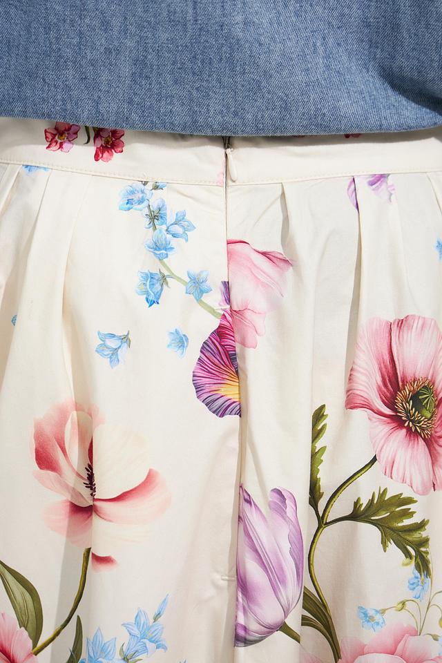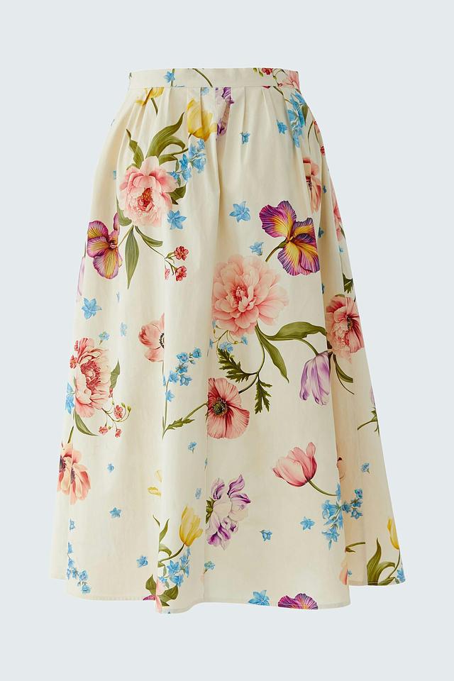 Юбка от бренда Oui кремового цвета с ярким цветочным принтом станет прекрасным дополнением к вашему гардеробу. Модель выполнена из хлопка и имеет удобную завышенную талию. Состав: хлопок 100%