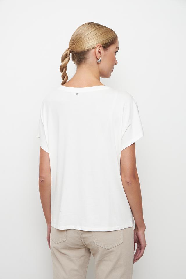 Футболка изготовлена из высококачественного материала, состоящего из 47% хлопка, 47% модала и 6% эластана. Такое сочетание обеспечивает мягкость, приятные тактильные ощущения и хорошую посадку по фигуре. Эта футболка станет вашим любимым элементом гардероба, который можно сочетать с джинсами, брюками или юбками.