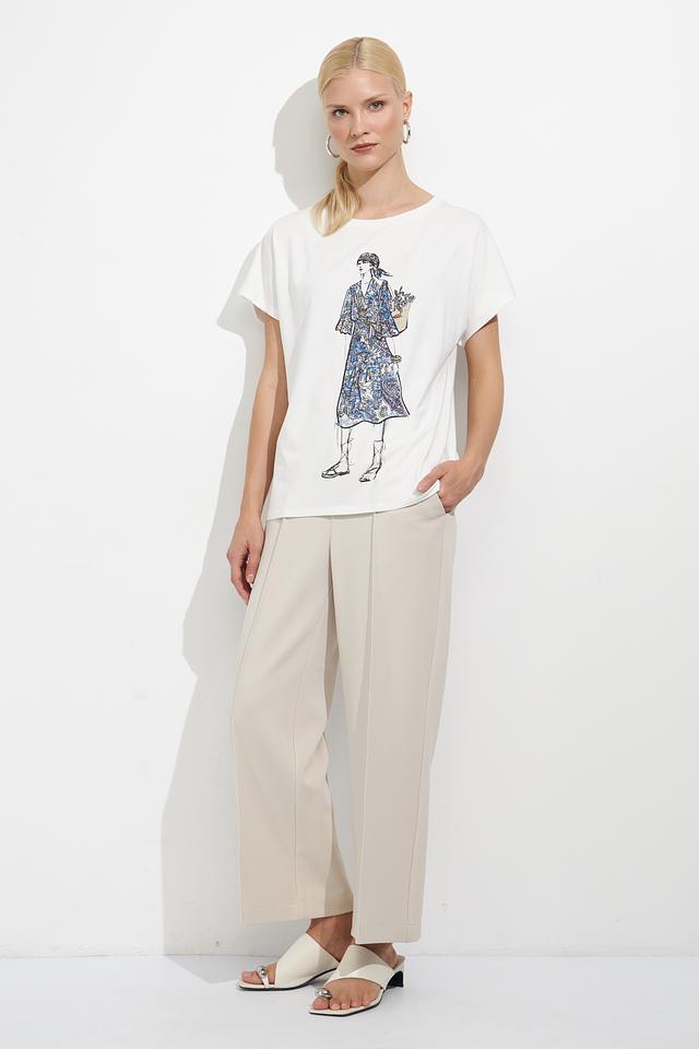 Футболка имеет прямой, слегка свободный крой, который не сковывает движений. Короткие рукава делают ее идеальным выбором для теплой погоды. Минималистичный дизайн позволяет сочетать эту футболку с различными элементами одежды – от джинсов и шорт до юбок и брюк.