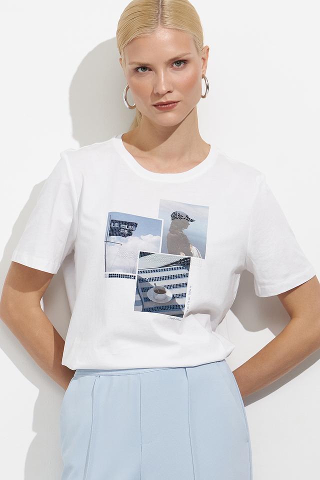 Белая футболка от Oui с оригинальным принтом — стильная и комфортная базовая вещь для создания повседневных образов. Изготовлена из 100% хлопка, обеспечивающего приятные ощущения на коже. Состав: хлопок 100%