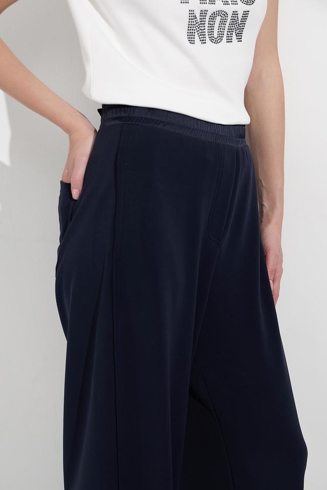 Состав ткани: 55% вискоза, 41% полиэстер, 4% эластан. Брюки приятны к телу, хорошо держат форму и не мнутся. Застежка – эластичный пояс с кулиской. Имеют два боковых кармана.