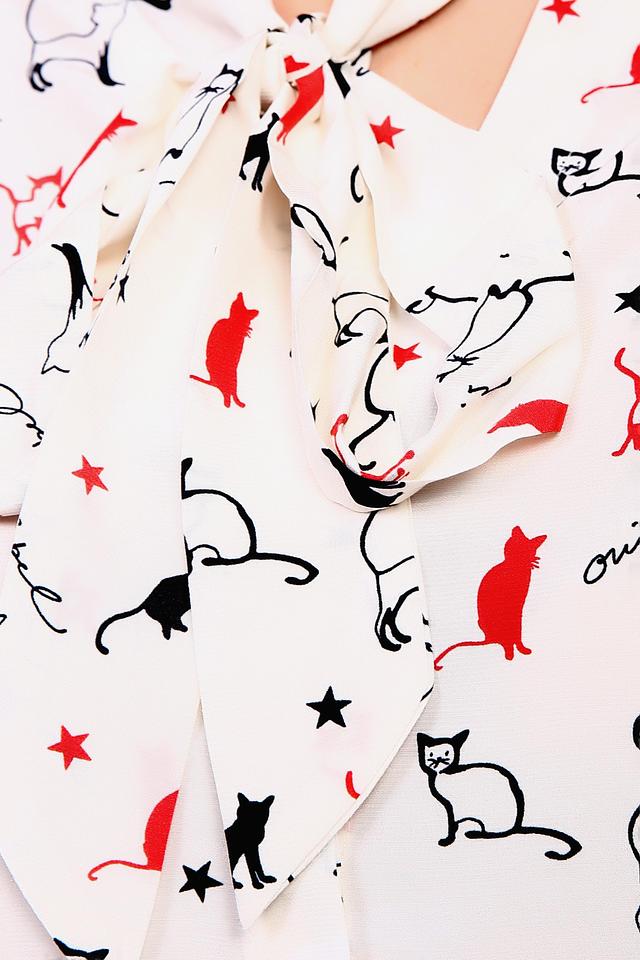 Эта блуза станет отличным дополнением к вашему гардеробу, добавив в него нотку игривости и оригинальности. Она прекрасно сочетается с брюками, юбками и джинсами, позволяя создавать разнообразные стильные комплекты. Состав: 100% вискоза.