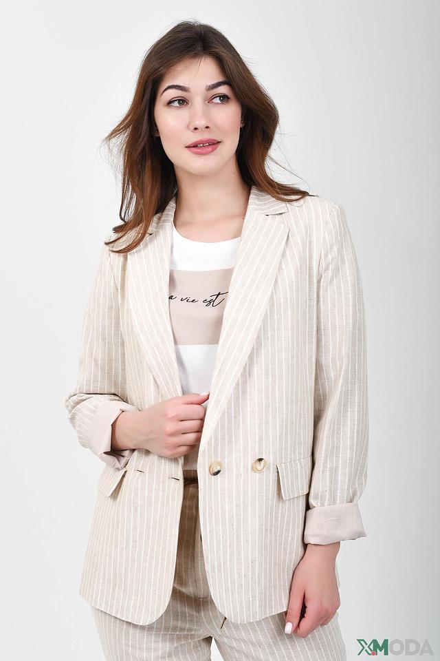 Жакет Oui бежевого цвета в тонкую полоску – стильное и универсальное решение для создания элегантного образа. Классический крой и аккуратный декор придают модели особый шарм. Состав: Состав_подкладка хлопок 100%, хлопок 70%, лен 30%