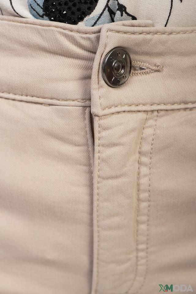 Джинсы имеют стандартную посадку на талии, застежку на молнию и пуговицу, а также функциональные карманы. Ткань приятна на ощупь и хорошо держит форму. Состав: хлопок 67%, полиэстер 29%, эластан 4%.