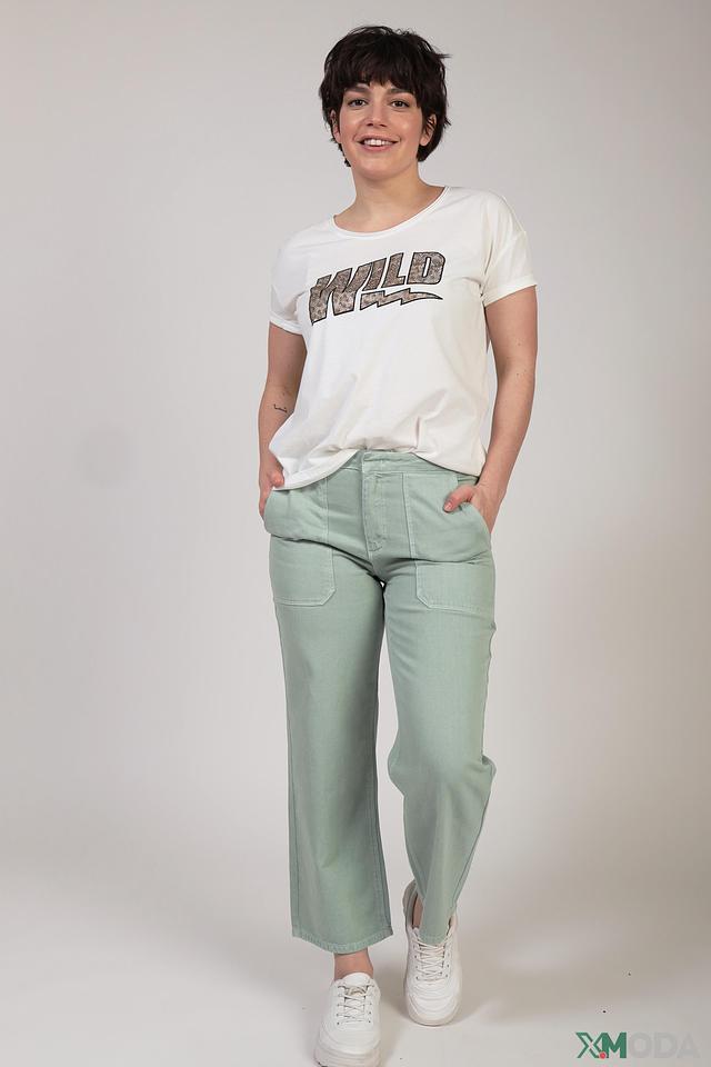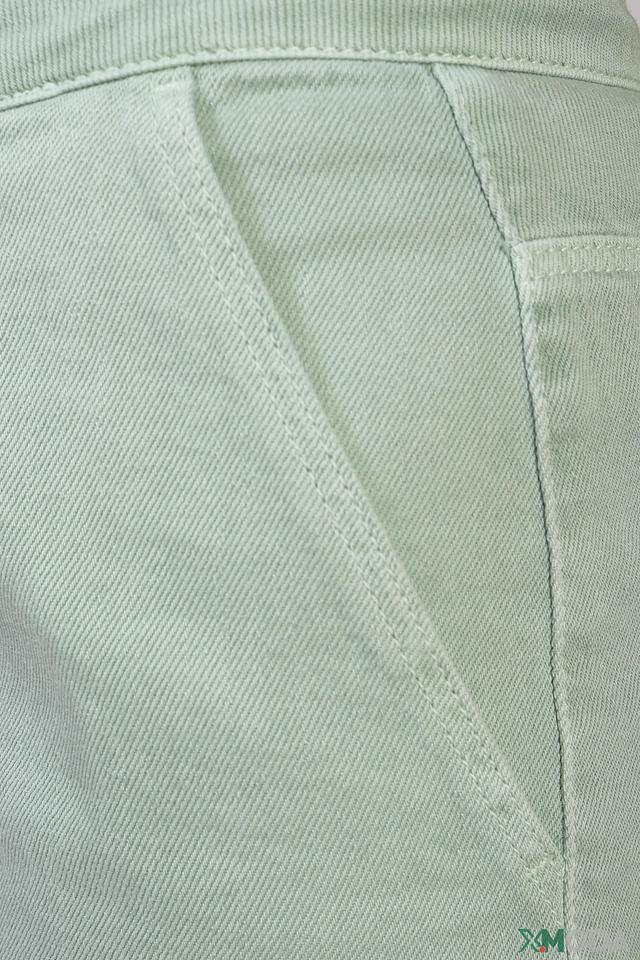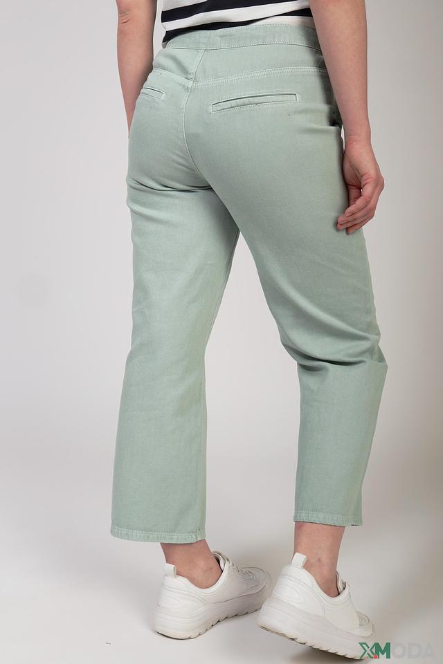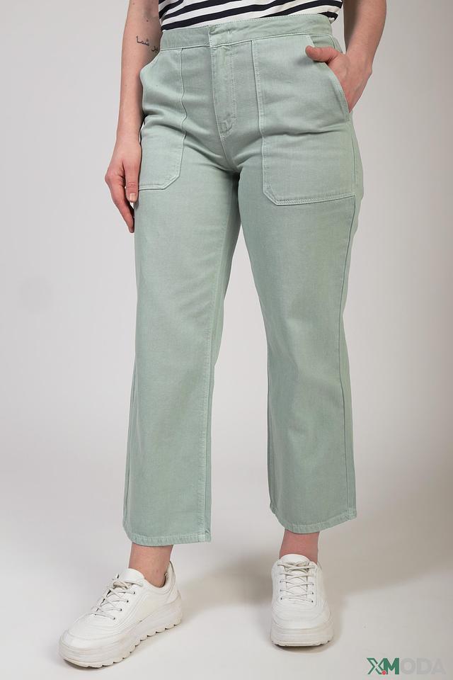 Брюки имеют прямой, слегка укороченный крой, который визуально удлиняет ноги. Мягкий мятный цвет делает их универсальными и легко сочетаемыми с различными верхами.