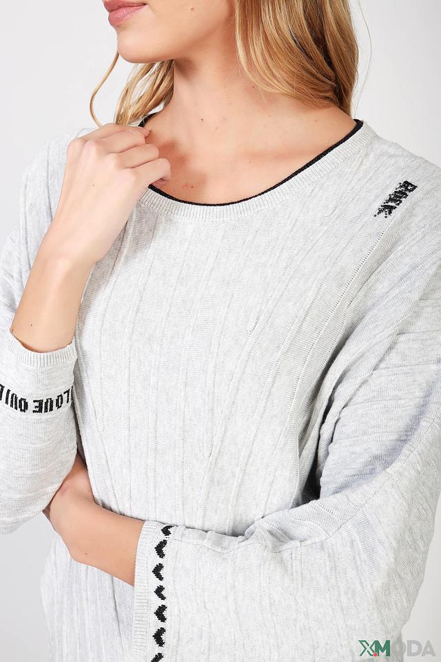 Серый пуловер от Oui из 100% хлопка с оригинальным дизайном и принтами на рукавах. Удобный крой и мягкий материал делают этот пуловер идеальным выбором для повседневного образа. Состав: хлопок 100%