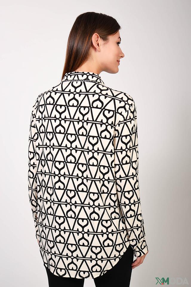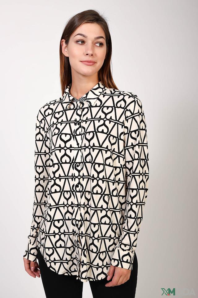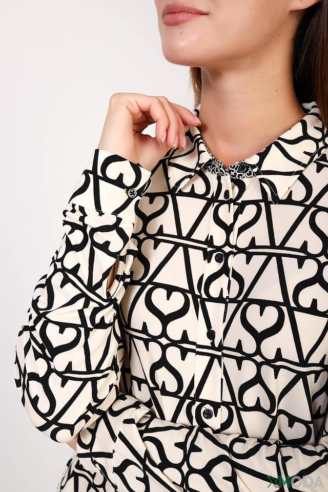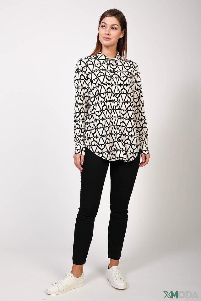 Эта рубашка от бренда Oui станет ярким акцентом вашего образа. Выполнена в кремовом цвете с эффектным принтом, изображающим повторяющиеся сердца чёрного цвета.