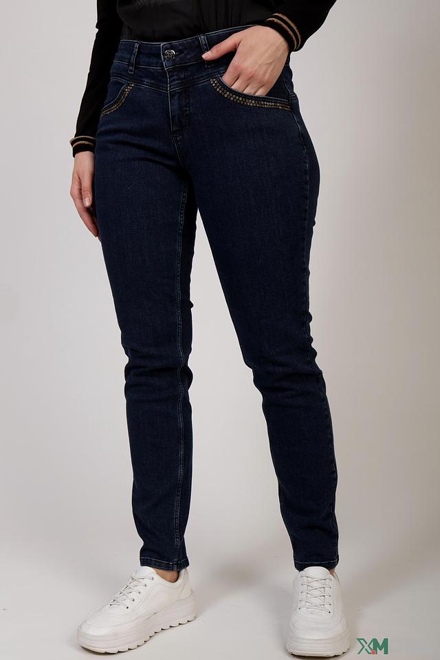 Высокая посадка визуально удлиняет ноги и подчеркивает талию. Оригинальная деталь – декоративная отделка в виде страз на кармане, добавляющая образу изысканности.