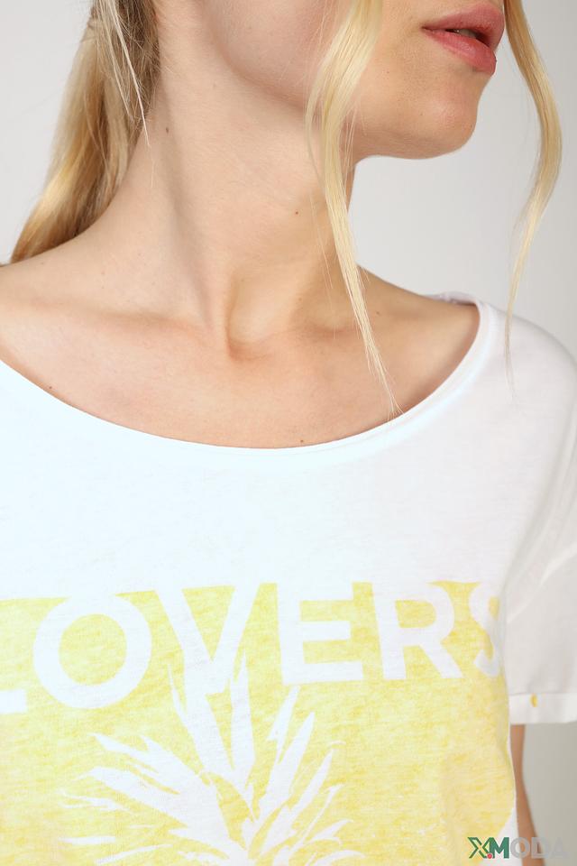 Белая футболка от Oui с ярким принтом ананаса и надписью "LOVERS". Изготовлена из 100% хлопка, обеспечивая комфорт и воздухопроницаемость. Отличный выбор для создания летнего и непринужденного образа. Состав: хлопок 100%
