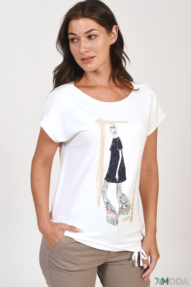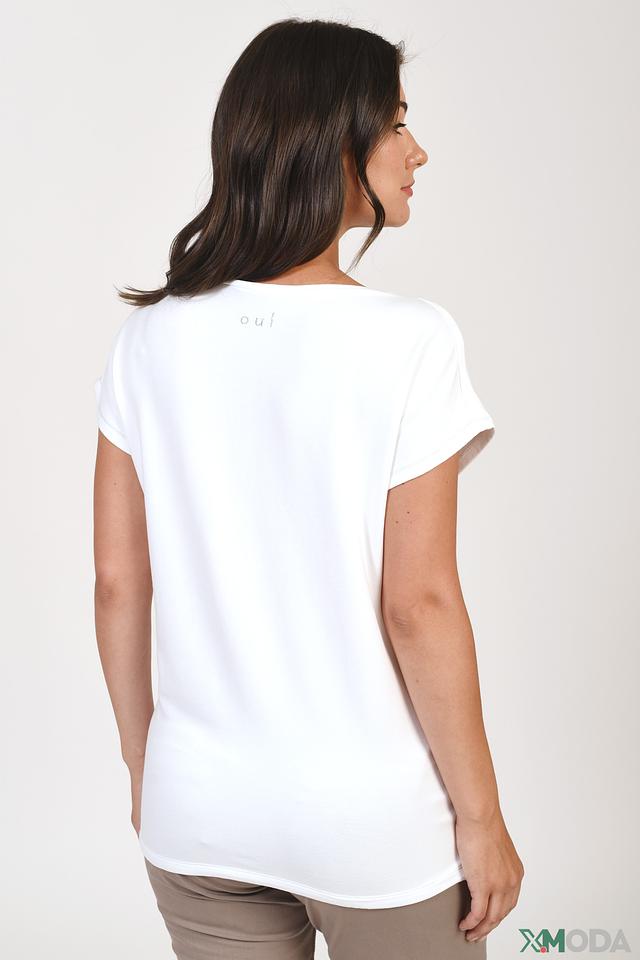 Белая блуза от Oui с оригинальным принтом в виде силуэта девушки. Модель выполнена из мягкого модала с добавлением хлопка и эластана, обеспечивающих комфорт и удобство в носке. Состав: модал 70%, хлопок 25%, эластан 5%