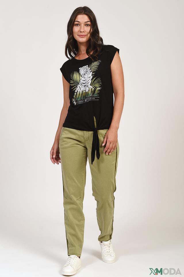 Женские брюки Oui хаки цвета с контрастной полоской по боковому шву — стильное и удобное решение для повседневного гардероба. Модель выполнена из мягкой ткани с добавлением эластана для комфортной посадки. Состав: лиоцел 61%, хлопок 36%, эластан 3%