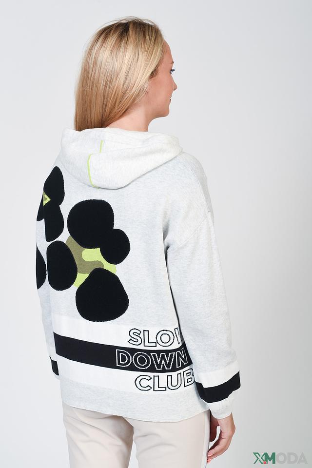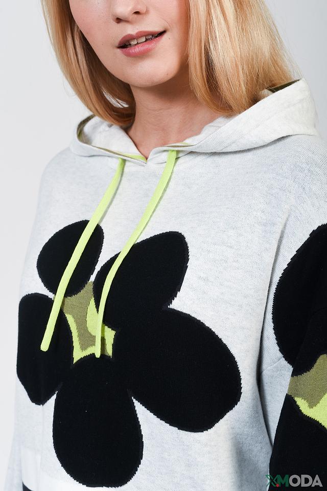 Эта женская толстовка от бренда Oui выполнена в сером цвете и украшена эффектным цветочным принтом. Модель имеет удобный капюшон и свободный крой, обеспечивающий комфорт в повседневной носке.