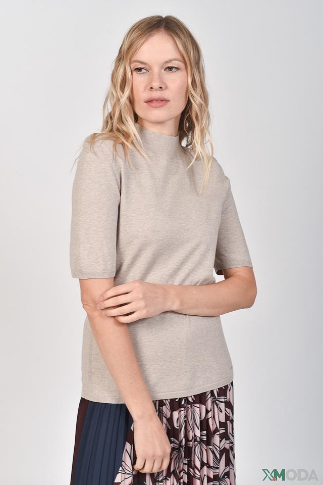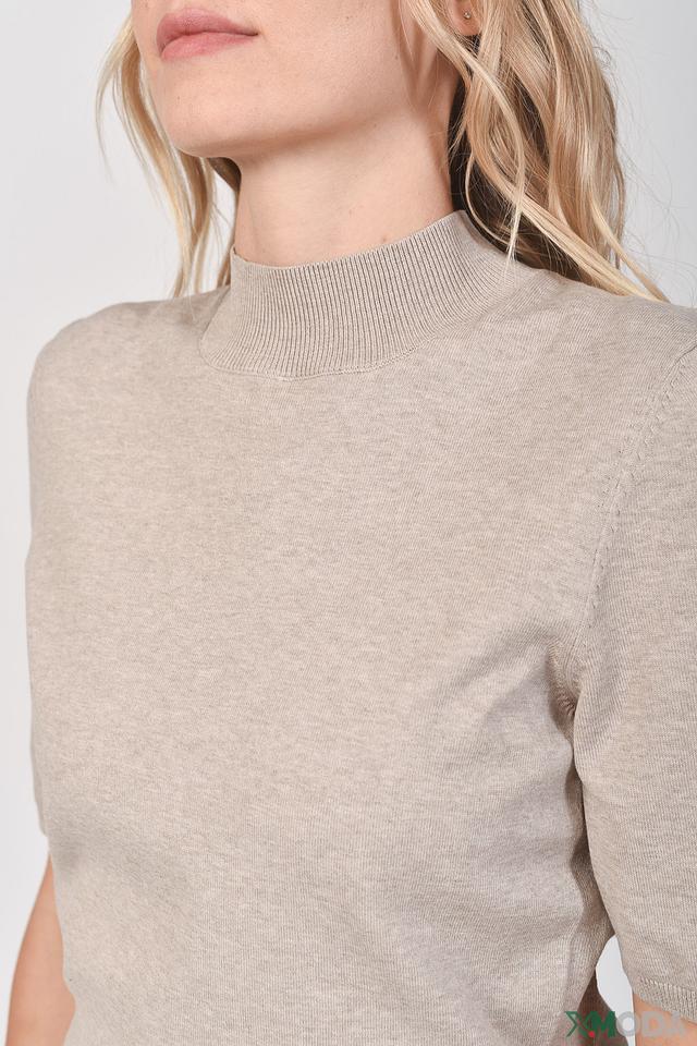 Бежевый пуловер от Oui с коротким рукавом и воротником-стойкой. Изготовлен из мягкого хлопка с добавлением полиамида для сохранения формы. Идеальный выбор для создания комфортного и стильного образа. Состав: хлопок 80%, полиамид 20%