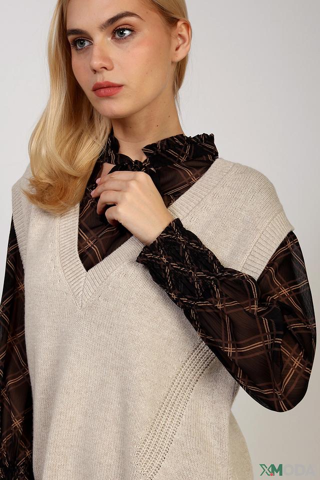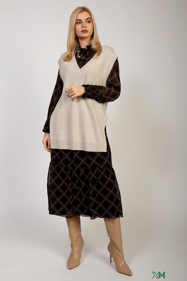 Состав: 50% шерсть, 30% полиамид, 20% модал. Этот жилет станет универсальным элементом вашего гардероба, который можно сочетать с рубашками, блузками, платьями и другими вещами. Он отлично подойдёт для создания как повседневных, так и более элегантных образов.