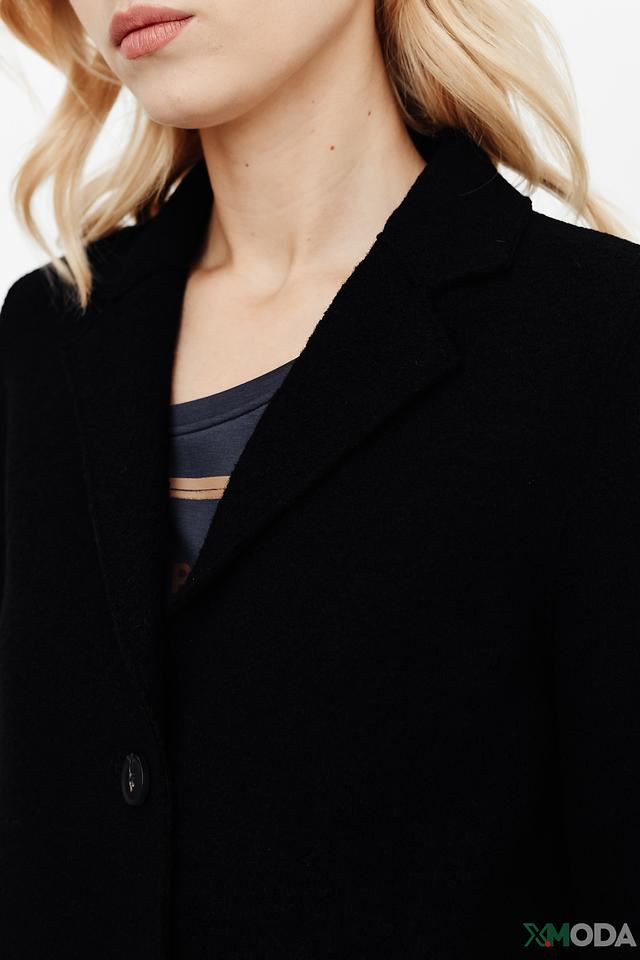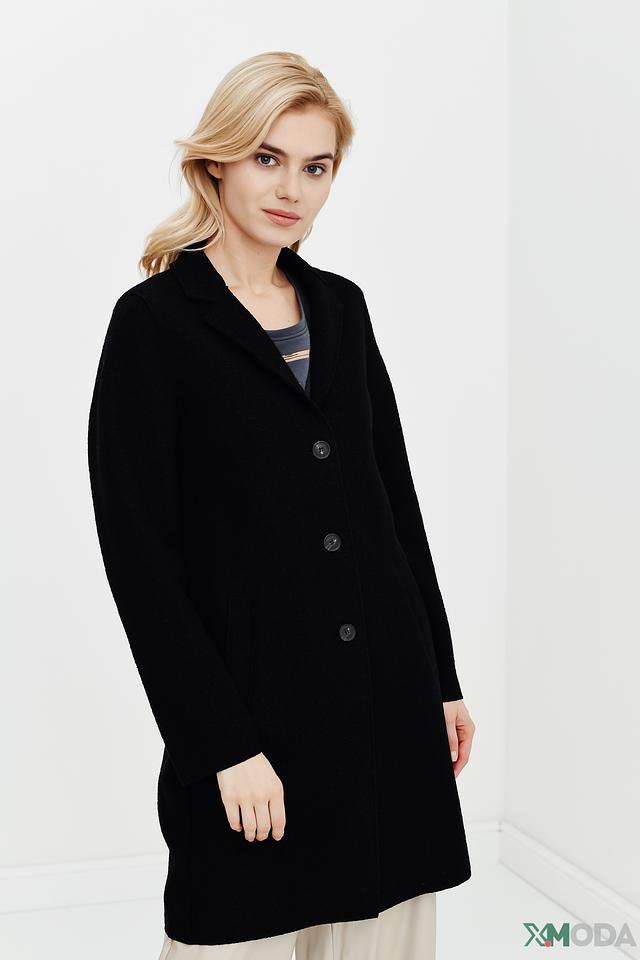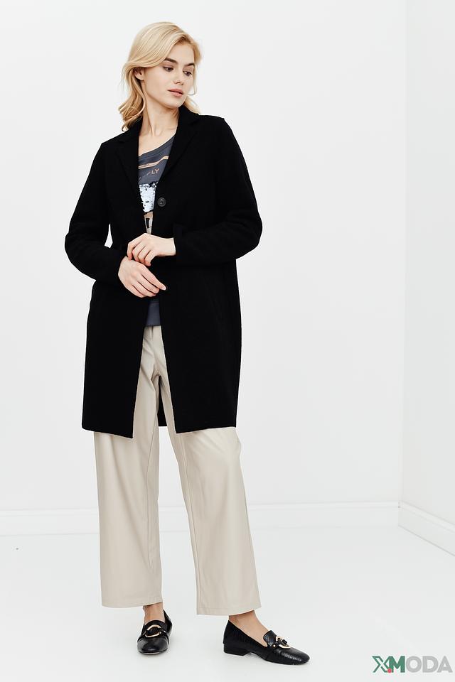 Чёрное пальто от Oui классического кроя. Изготовлено из шерсти и вискозы, имеет застёжку на пуговицы и лаконичный дизайн. Идеальный выбор для создания элегантного образа. Состав: шерсть 52%, вискоза 48%