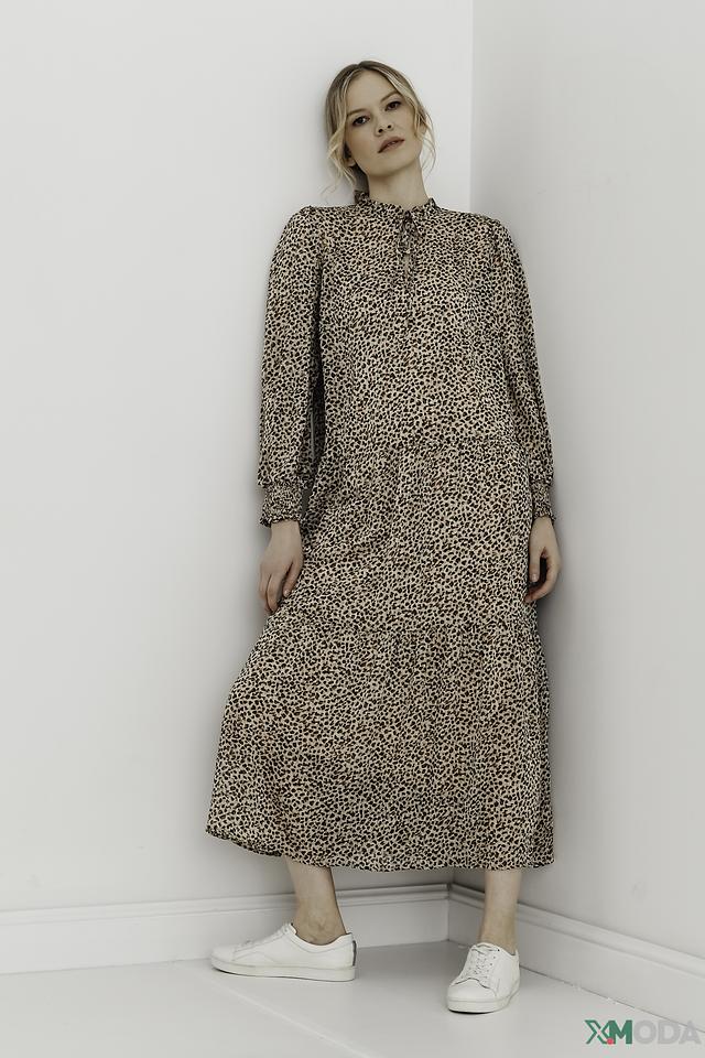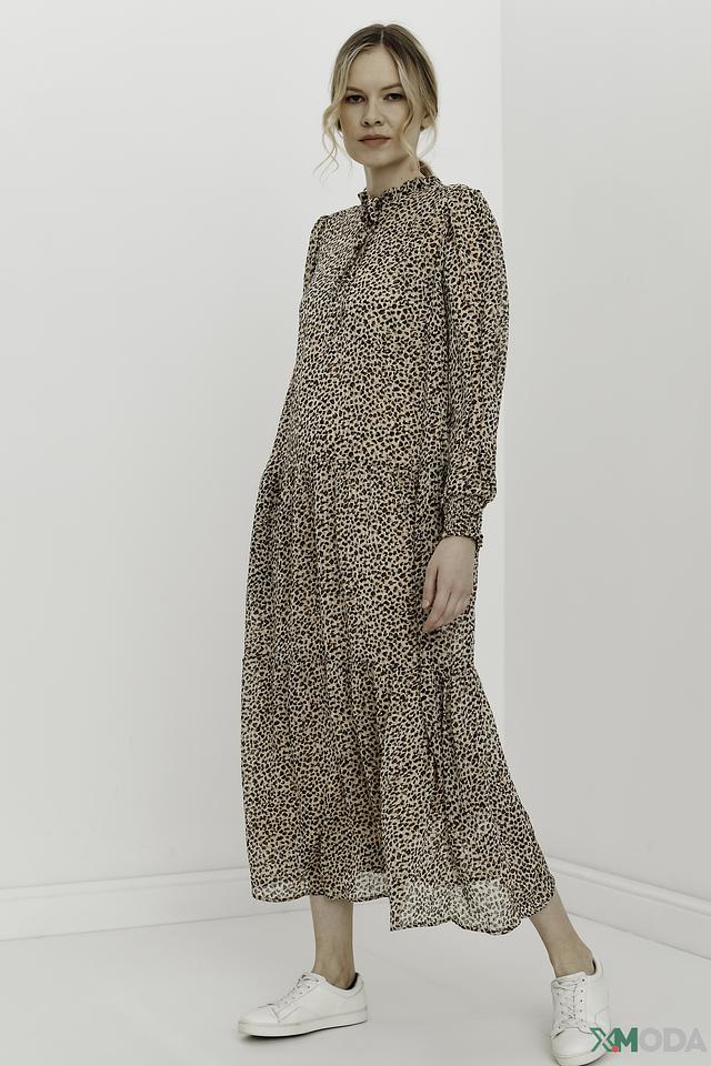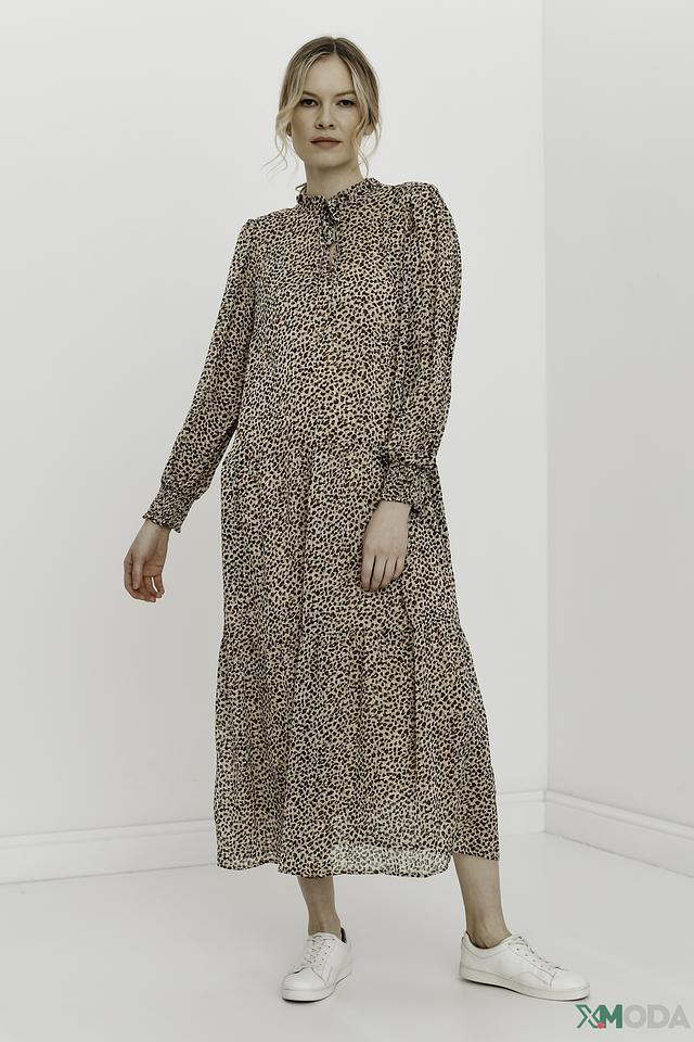 Это платье от бренда Oui станет отличным дополнением к вашему гардеробу. Модель выполнена в бежевой цветовой гамме и украшена эффектным леопардовым принтом, который придаёт образу динамичность и выразительность.