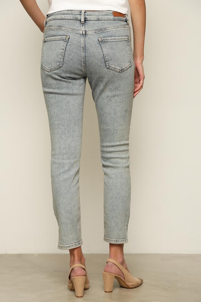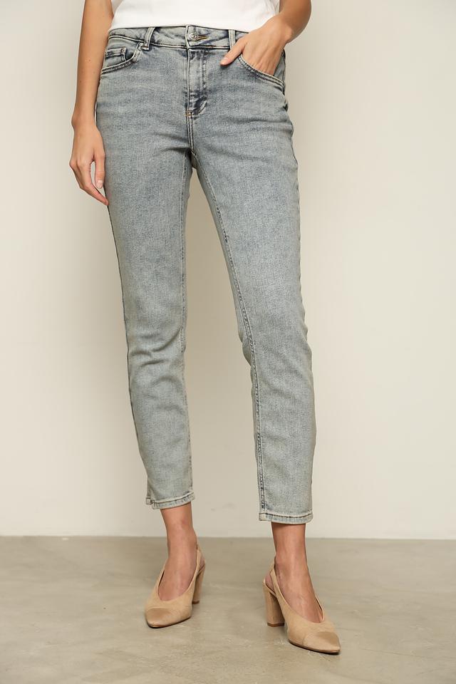 Эти джинсы от Oui выполнены в светло-сером цвете с эффектом кислотной стирки. Модель имеет классическую посадку по талии и зауженный к низу крой, который визуально удлиняет ноги.