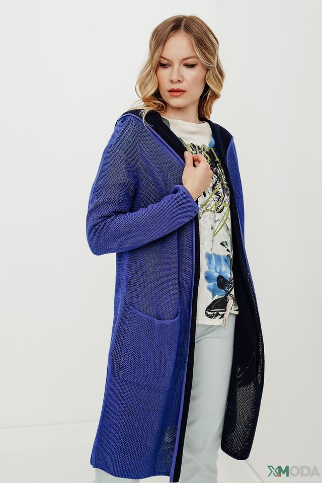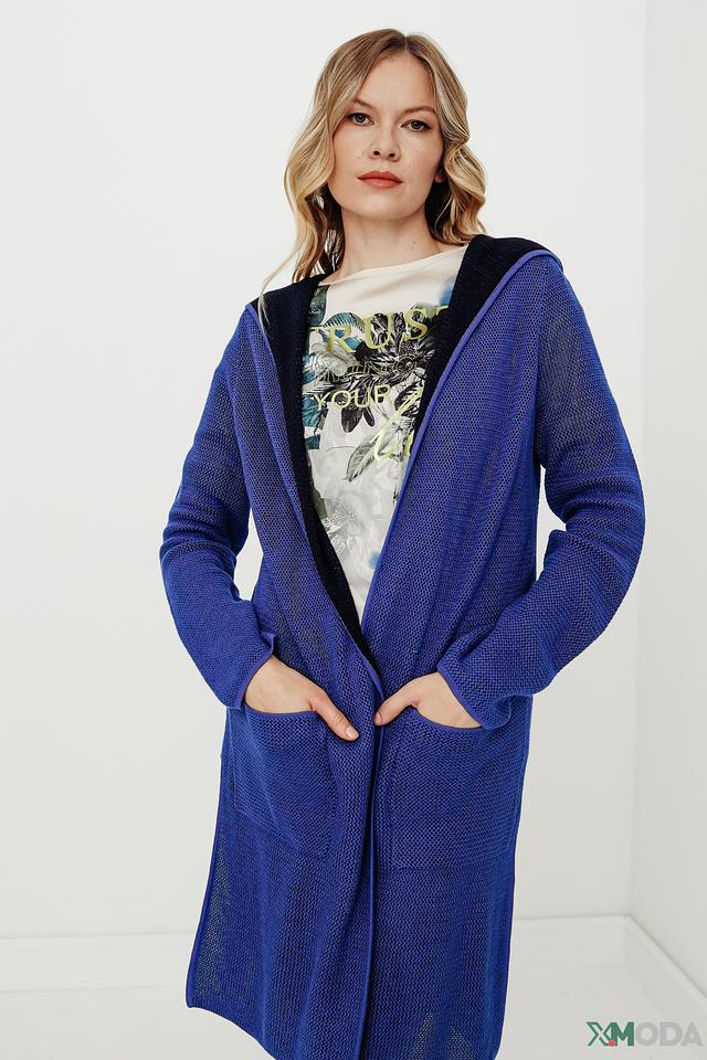 Синий кардиган от Oui выполнен из мягкого вязаного полотна и дополнен удобным капюшоном. Длинный крой и карманы делают его практичным и стильным элементом гардероба. Состав: хлопок 68%, вискоза 23%, шелк 5%, полиамид 4%