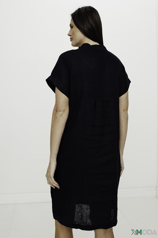 Черное льняное платье от Oui – это комфорт и стиль в одном изделии. Платье свободного кроя с V-образным вырезом и декоративной отделкой, идеально подходит для повседневной носки. Состав: лен 100%