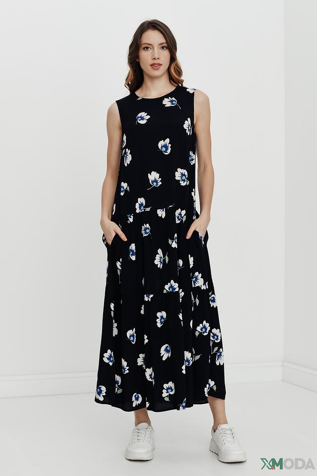 Модель имеет прямой силуэт, длину миди и удобные боковые карманы. Платье с круглым вырезом горловины и широкими бретелями, что обеспечивает комфортную посадку. Благодаря легкому и дышащему материалу – 100% вискозе – платье идеально подходит для теплой погоды.