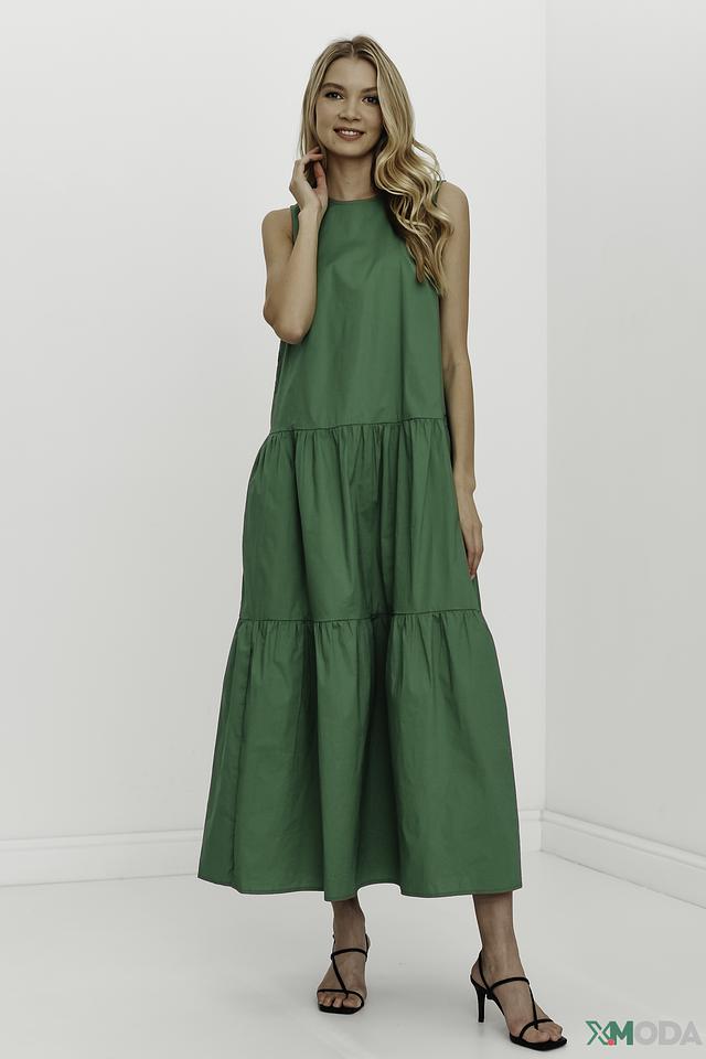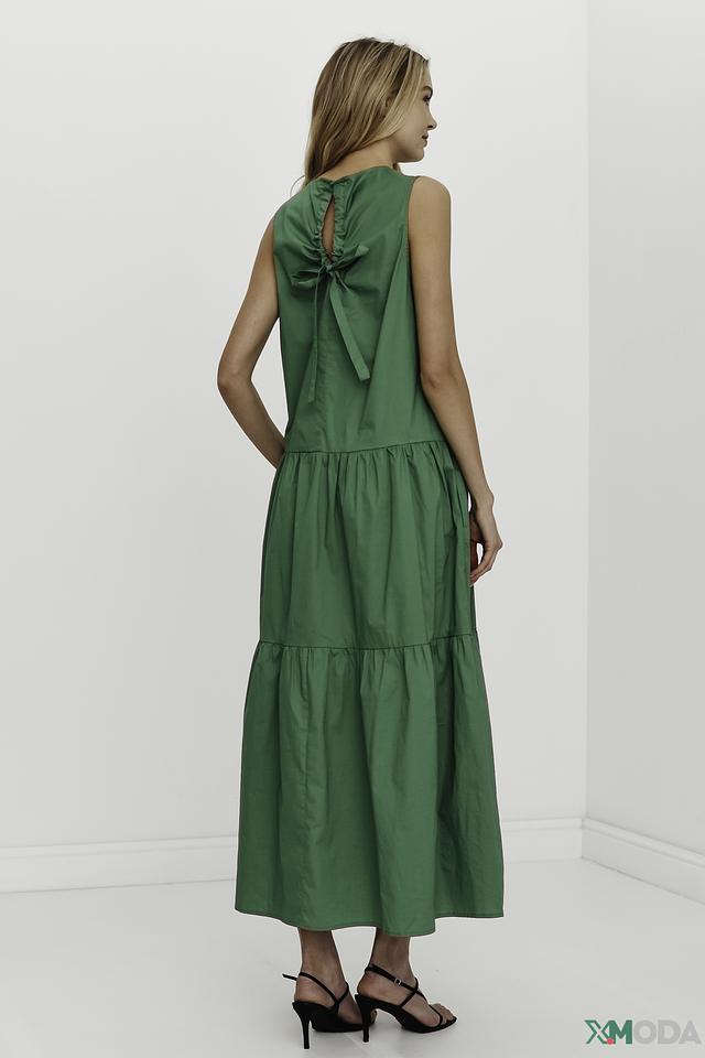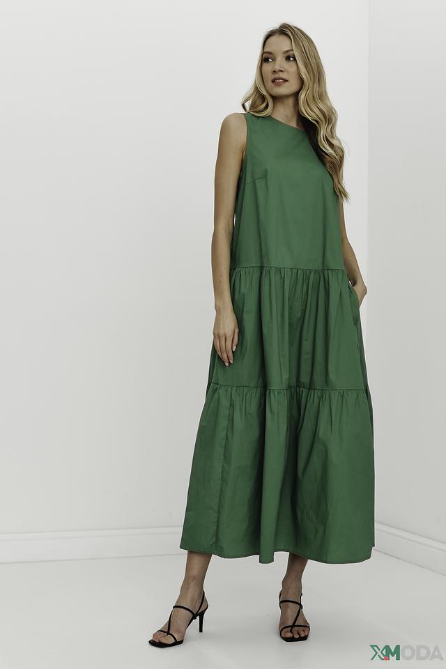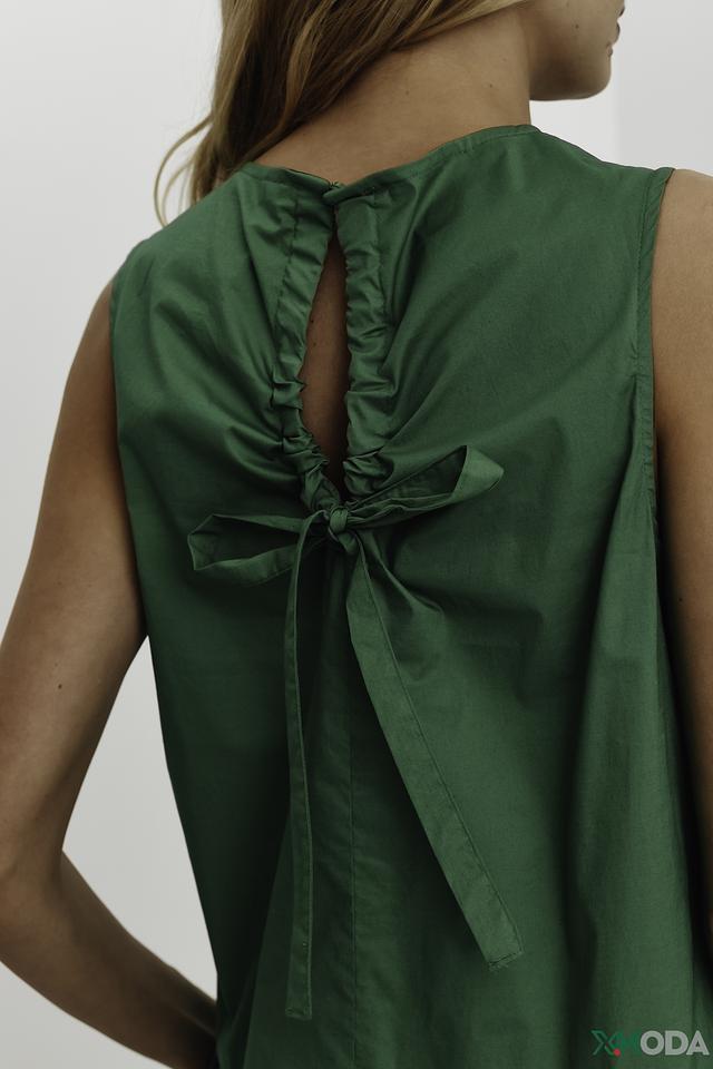Это платье от бренда Oui выполнено из хлопка с добавлением эластана, что обеспечивает комфорт в носке и хорошую посадку по фигуре. Преобладающий цвет – насыщенный зелёный.