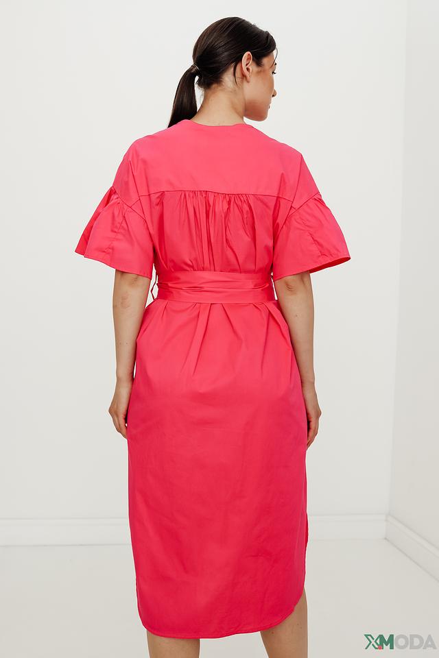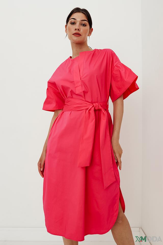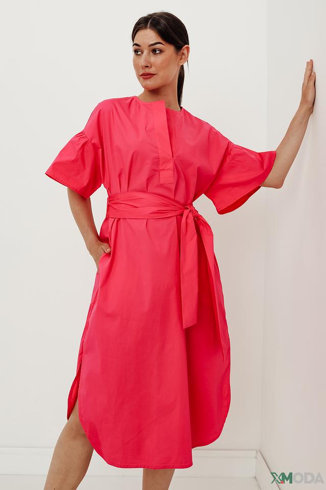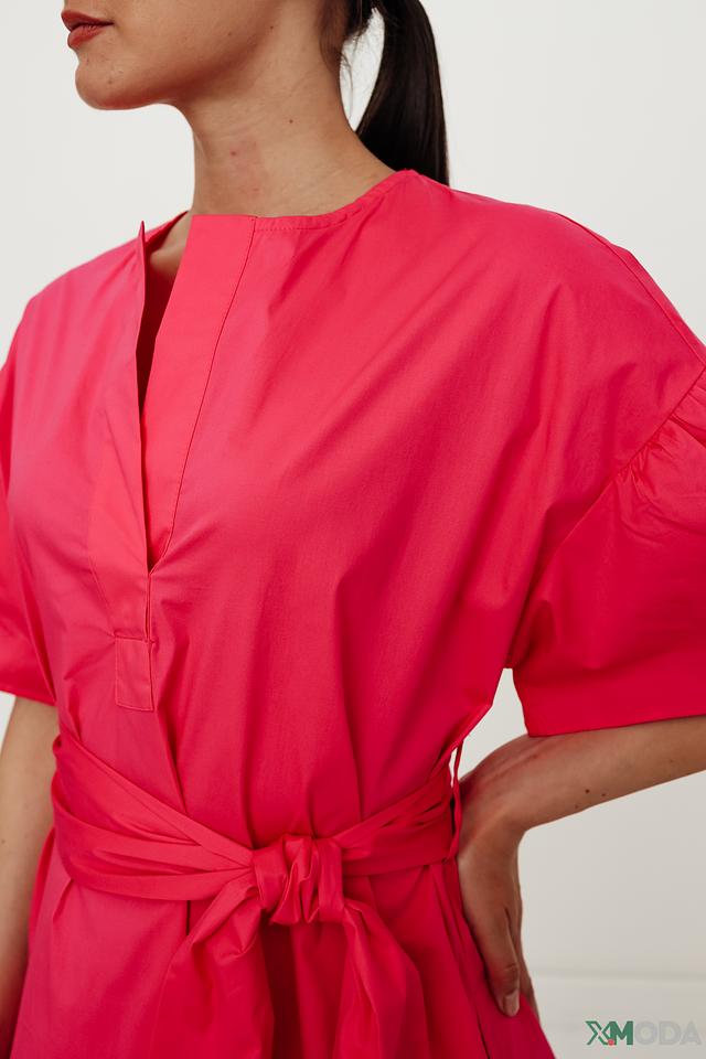 Платье от Oui яркого фуксиевого цвета выполнено из хлопка с добавлением эластана. Модель имеет свободный крой, рукава-фонарики и акцентный пояс, подчеркивающий талию. Состав: хлопок 95%, эластан 5%