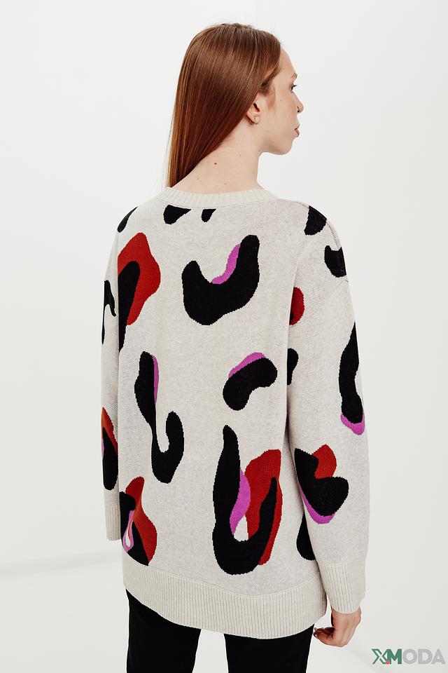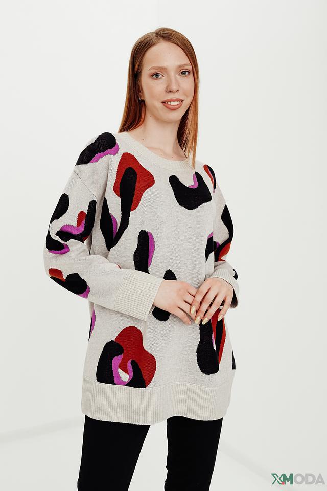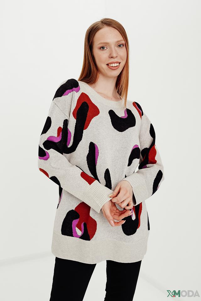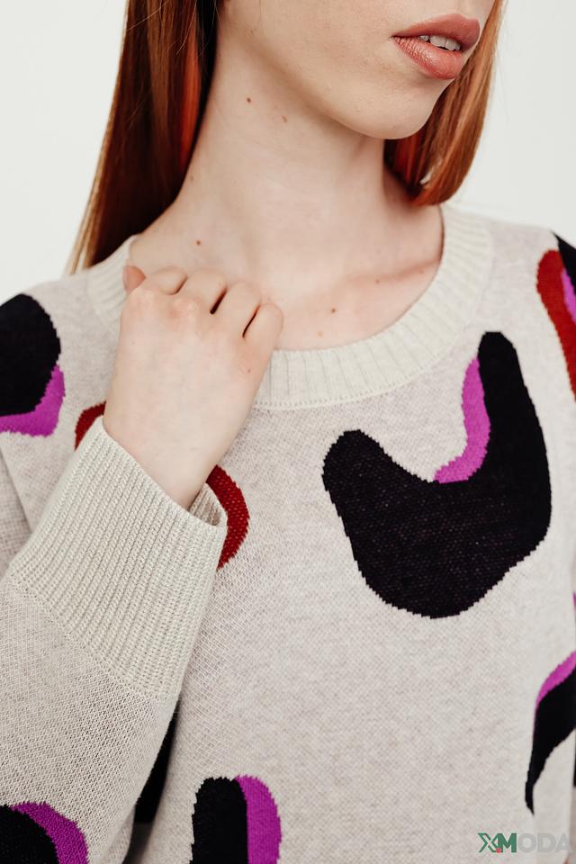 Этот пуловер от бренда Oui – идеальный выбор для создания комфортного и стильного образа. Пуловер выполнен в бежевом цвете и украшен оригинальным абстрактным принтом, сочетающим в себе оттенки красного, черного и фиолетового.