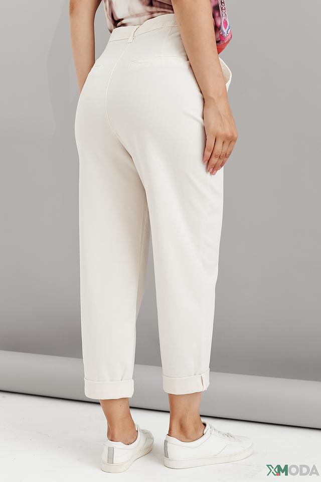 Брюки имеют прямой, слегка свободный крой, который обеспечивает комфорт при носке. Завышенная талия визуально удлиняет ноги и подчеркивает фигуру. Модель дополнена боковыми карманами и аккуратными складками спереди.